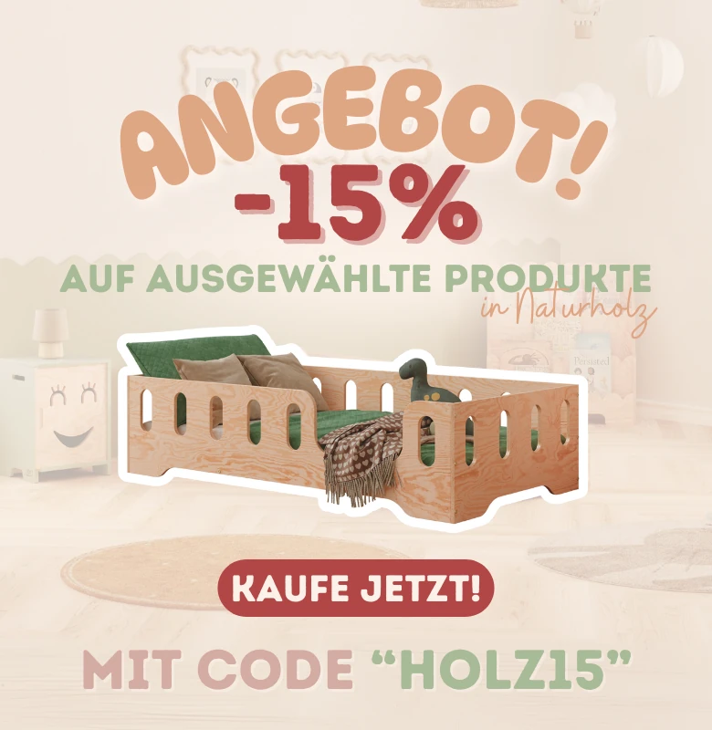 Wir wissen, wie wichtig die Sicherheit Ihres Kindes ist. Daher entspricht jedes unserer Kinderbetten den höchsten Standards und allen Sicherheitsnormen. Wenn Ihr Kind noch klein ist und Sie sich Sorgen machen, wie es alleine im Bett zurechtkommt, ist ein Kinderbett auf dem Boden die ideale Lösung. Es minimiert das Risiko eines Sturzes, und ein Bodenbett gewährleistet sicheres und komfortables Einschlafen und Spielen. Auch ein Kinderbett mit Rausfallschutz aus Holz ist in diesem Fall eine ausgezeichnete Wahl.