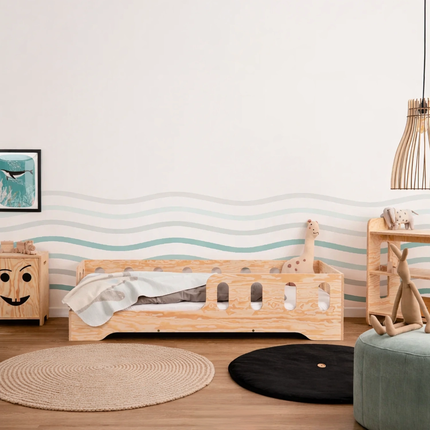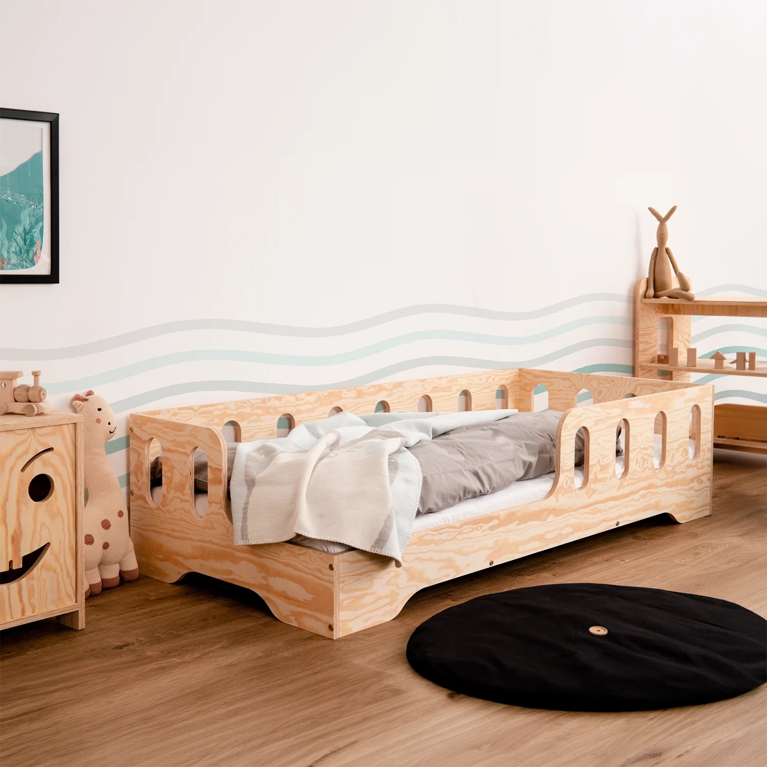 Einzelbett für Kinder mit Rausfallschutz und Lattenrost TILA 1 Montessori Holz