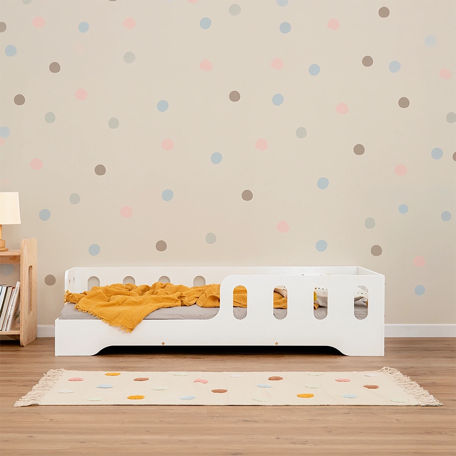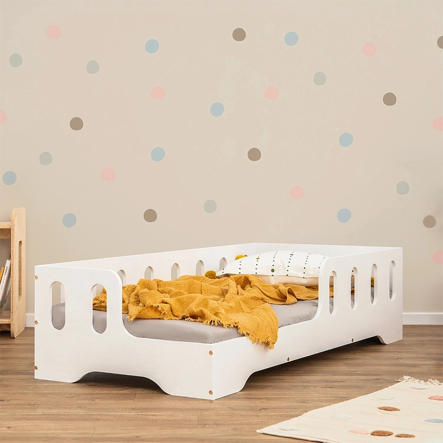 Einzelbett für Kinder mit Rausfallschutz und Lattenrost TILA 1 Montessori Holz