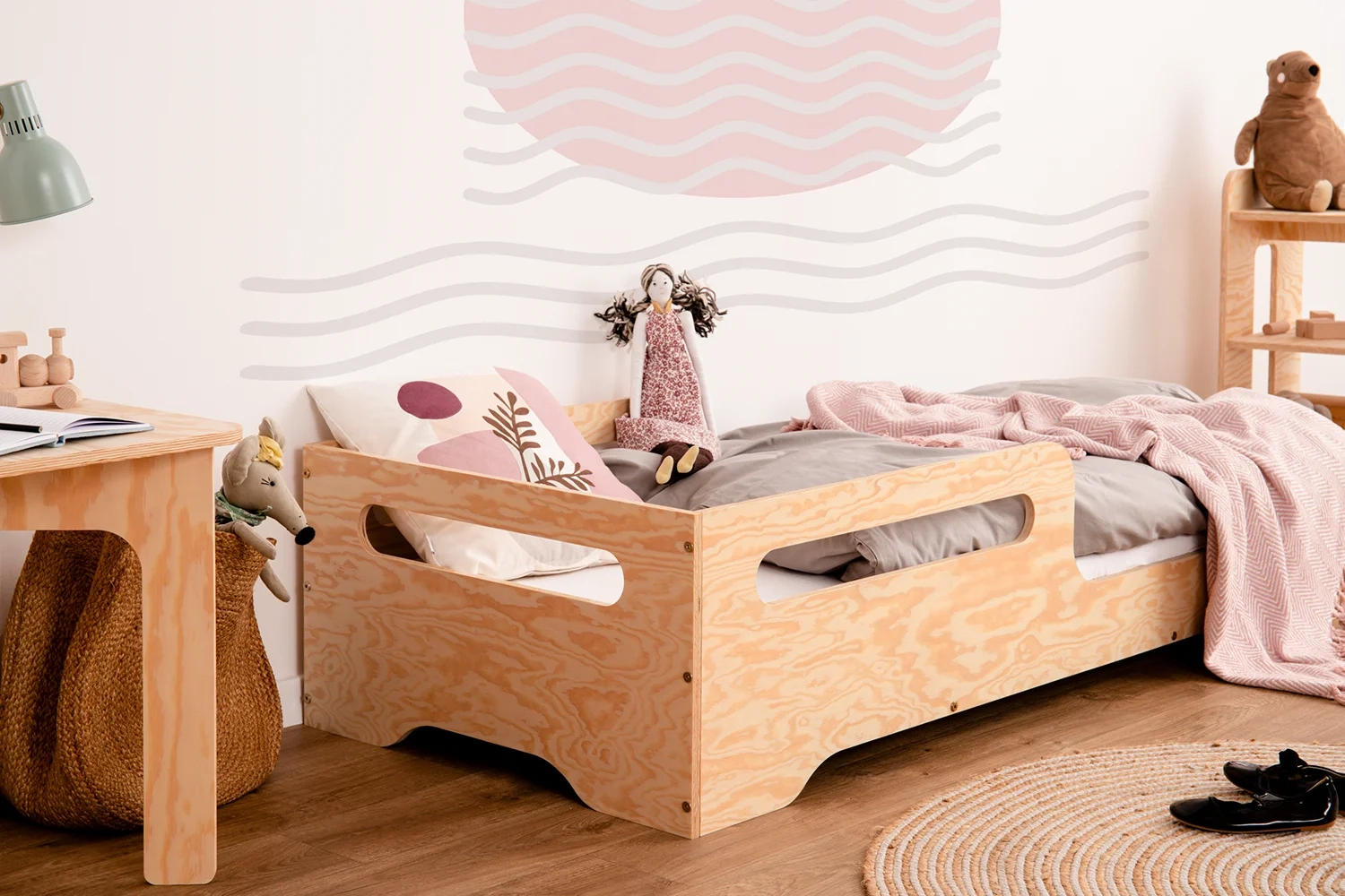TILA 3 zeichnet sich durch ein modernes Design mit eleganten und praktischen Ausschnitten an den Seiten aus, die dem Bett Leichtigkeit und Stil verleihen. Die niedrige Konstruktion ermöglicht ein einfaches Ein- und Aussteigen und unterstützt die Entwicklung der Selbstständigkeit des Kindes, während das Geländer an der Bettseite für einen sicheren Schlaf sorgt. Das Bett aus hochwertigem Kiefernsperrholz ist in 11 Farben und 20 Größen erhältlich und passt sich perfekt jedem Raum an. Die glatten, abgerundeten Kanten garantieren Sicherheit bei der Benutzung, was durch das Zertifikat des renommierten deutschen Instituts Prüfengel bestätigt wird. Der inklusive Lattenrost mit der max. Belastbarkeit bis zu 300 kg macht das Bett sofort nach dem Zusammenbau einsatzbereit.