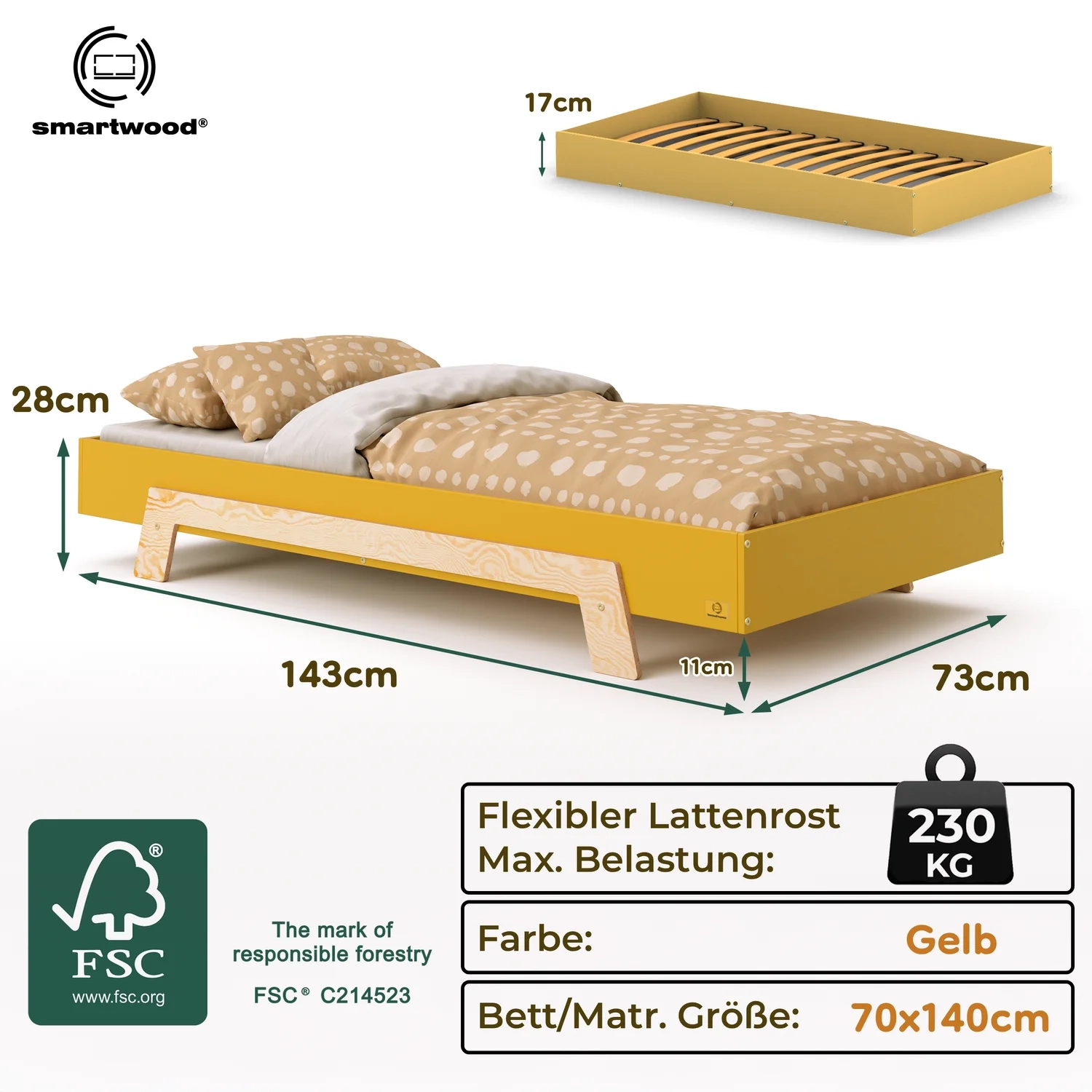 In der Praxis bedeutet das: Ein einziges Bett kann sowohl ein sicheres Bodenschlafplatz für Kleinkinder sein als auch ein „richtiges“, höheres Bett für ältere Kinder.