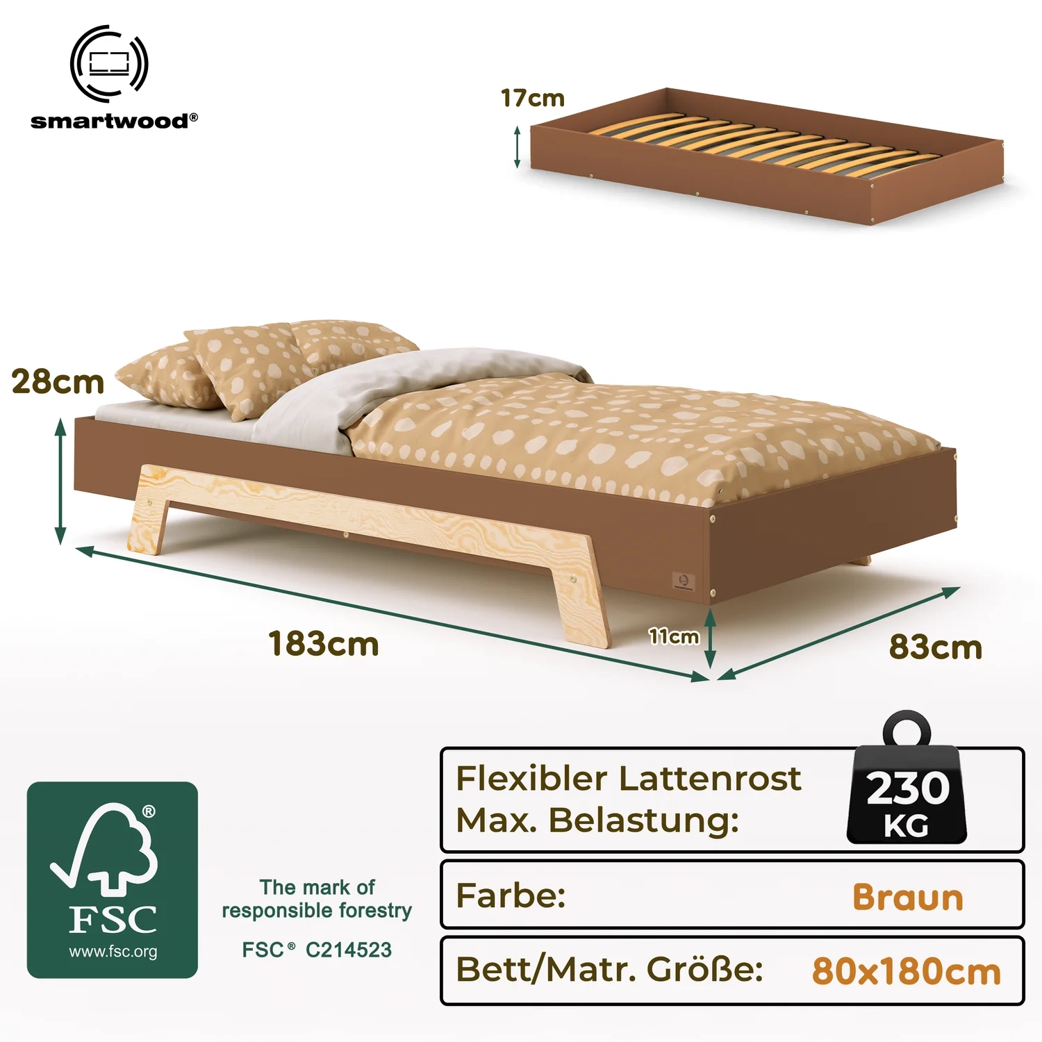 In der Praxis bedeutet das: Ein einziges Bett kann sowohl ein sicheres Bodenschlafplatz für Kleinkinder sein als auch ein „richtiges“, höheres Bett für ältere Kinder.