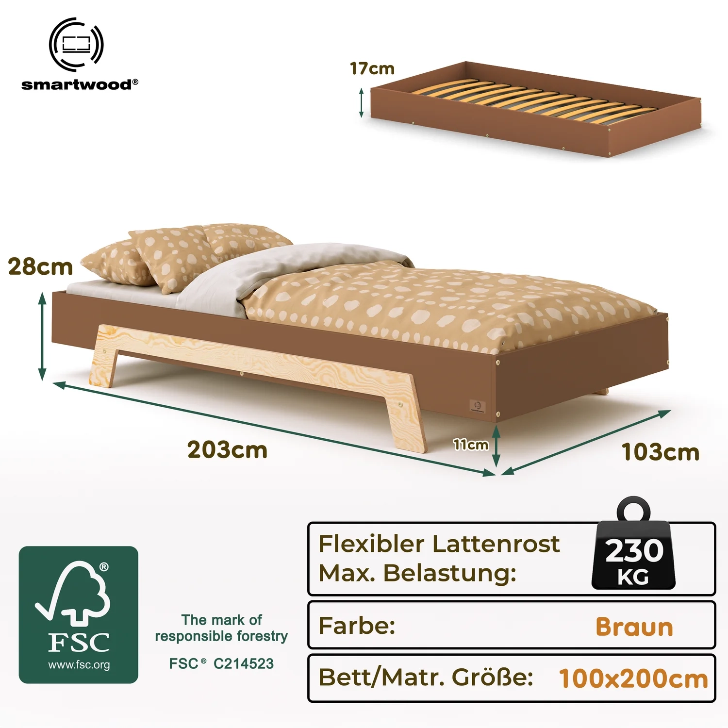 In der Praxis bedeutet das: Ein einziges Bett kann sowohl ein sicheres Bodenschlafplatz für Kleinkinder sein als auch ein „richtiges“, höheres Bett für ältere Kinder.