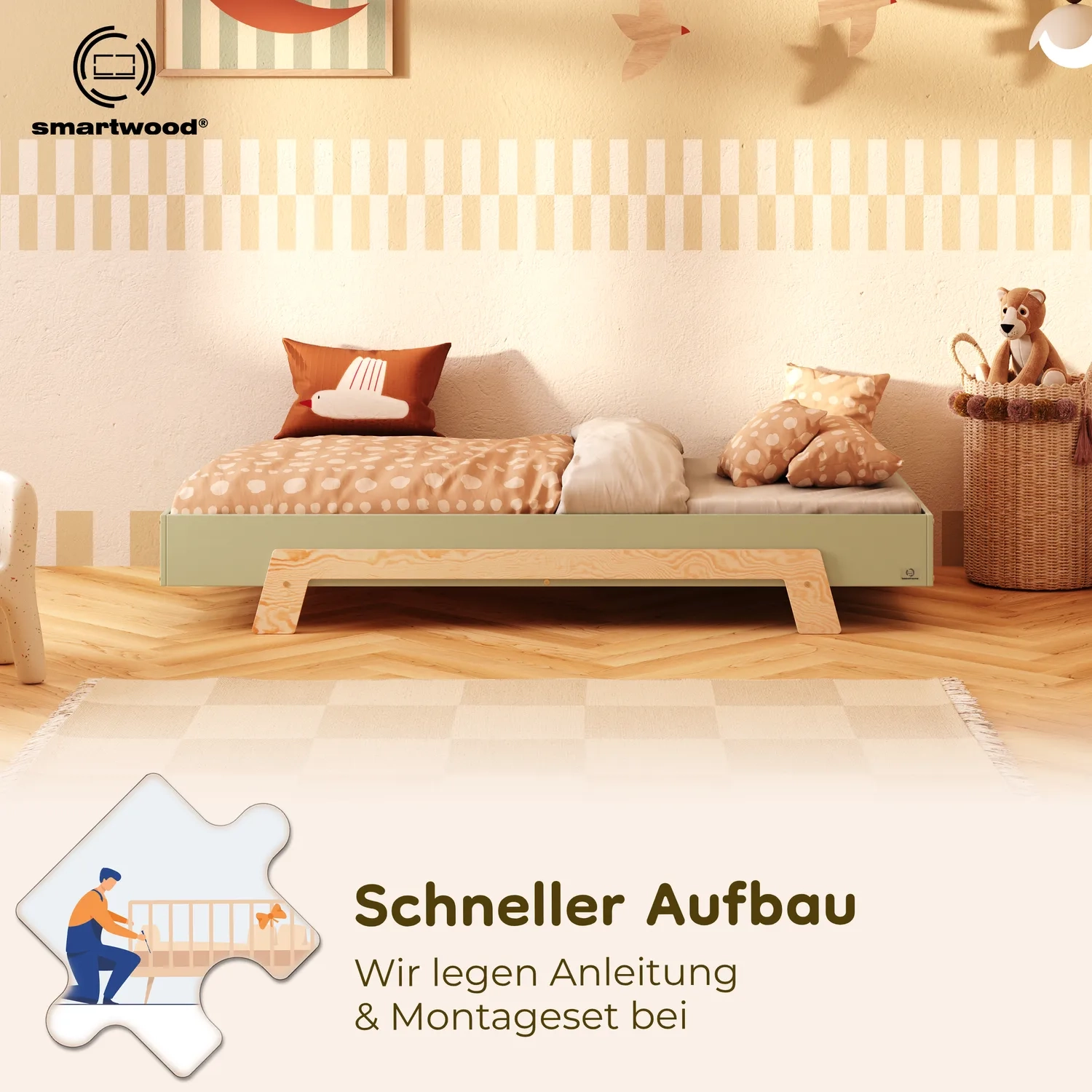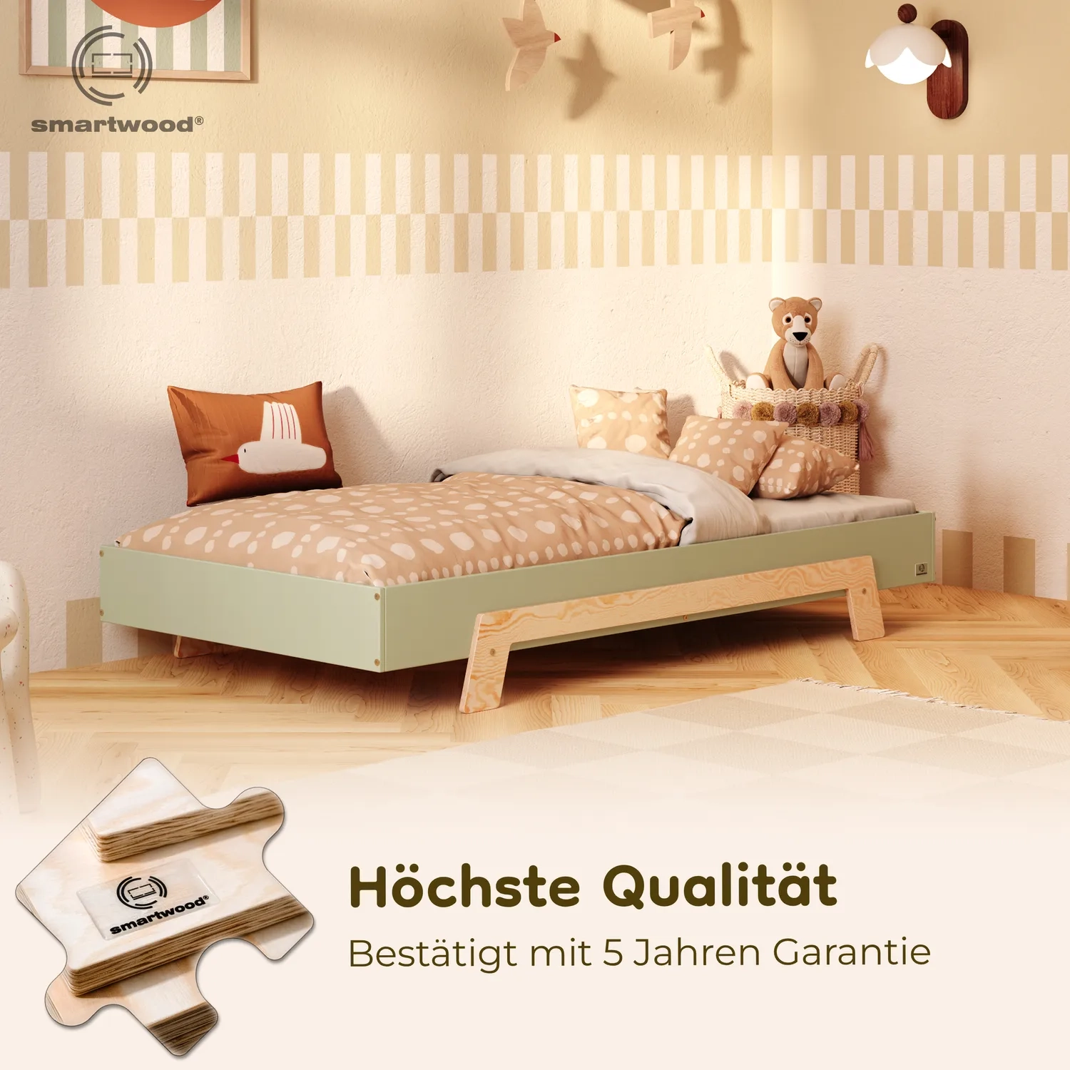 In der Praxis bedeutet das: Ein einziges Bett kann sowohl ein sicheres Bodenschlafplatz für Kleinkinder sein als auch ein „richtiges“, höheres Bett für ältere Kinder.