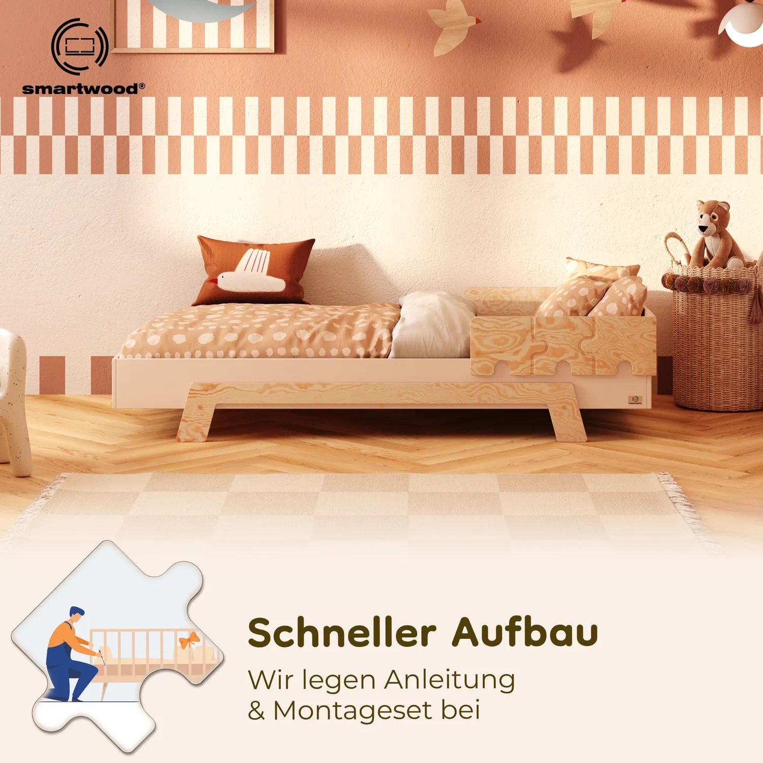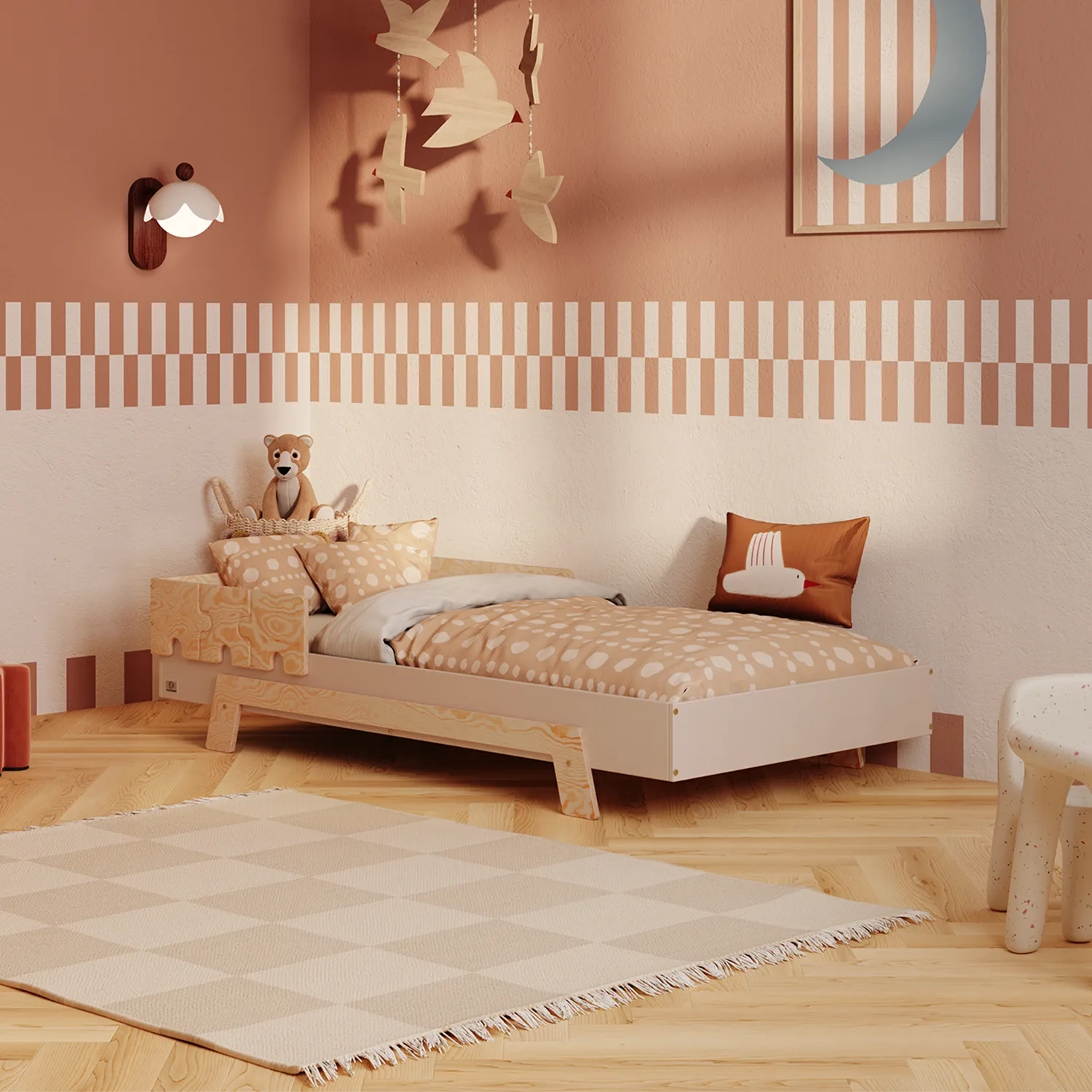 Einzelbett für Kinder mit Rausfallschutz und Lattenrost PUZZLE BR1 Montessori Holz