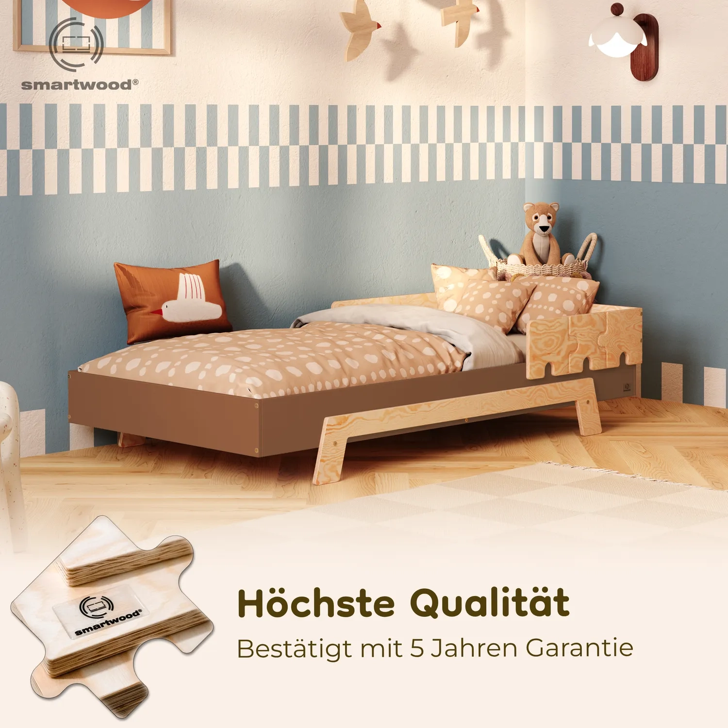 Rüsten Sie Ihr Bett mit einem zusätzlichen Geländer im Puzzle-Motiv aus.