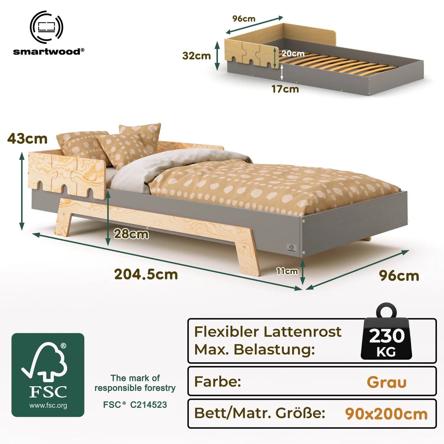 Rüsten Sie Ihr Bett mit einem zusätzlichen Geländer im Puzzle-Motiv aus.