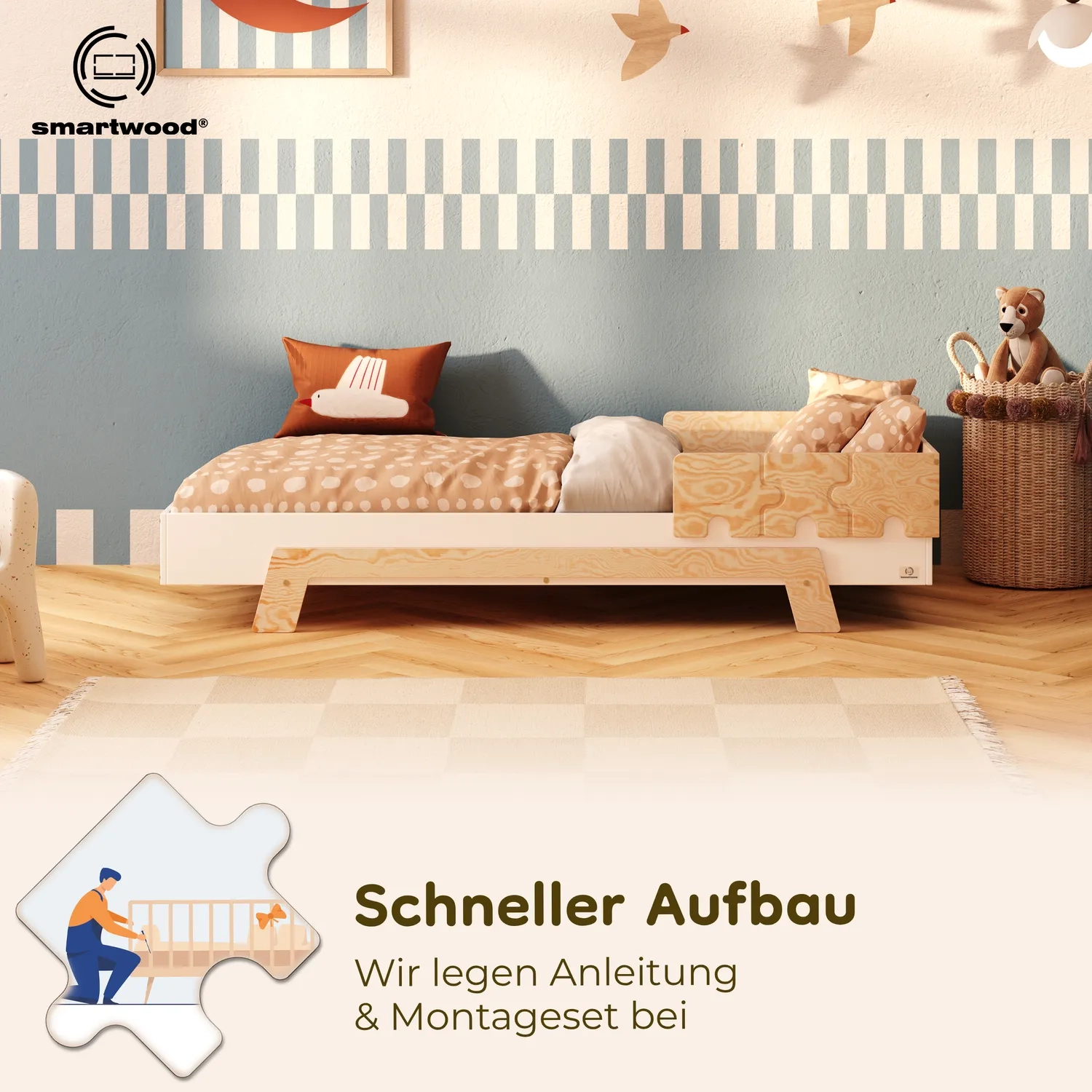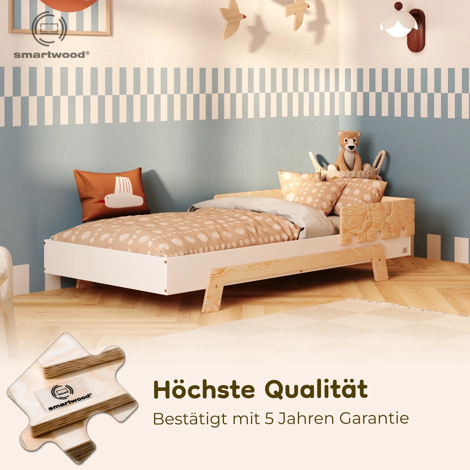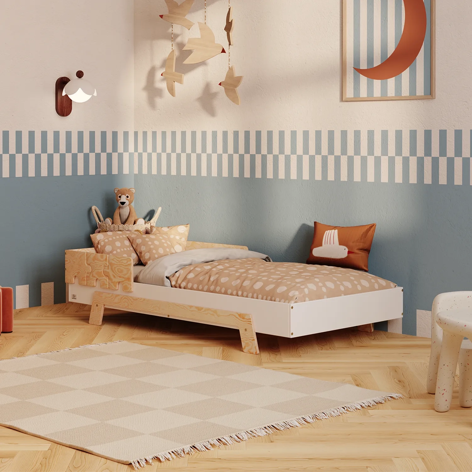 Einzelbett für Kinder mit Rausfallschutz und Lattenrost PUZZLE BR1 Montessori Holz