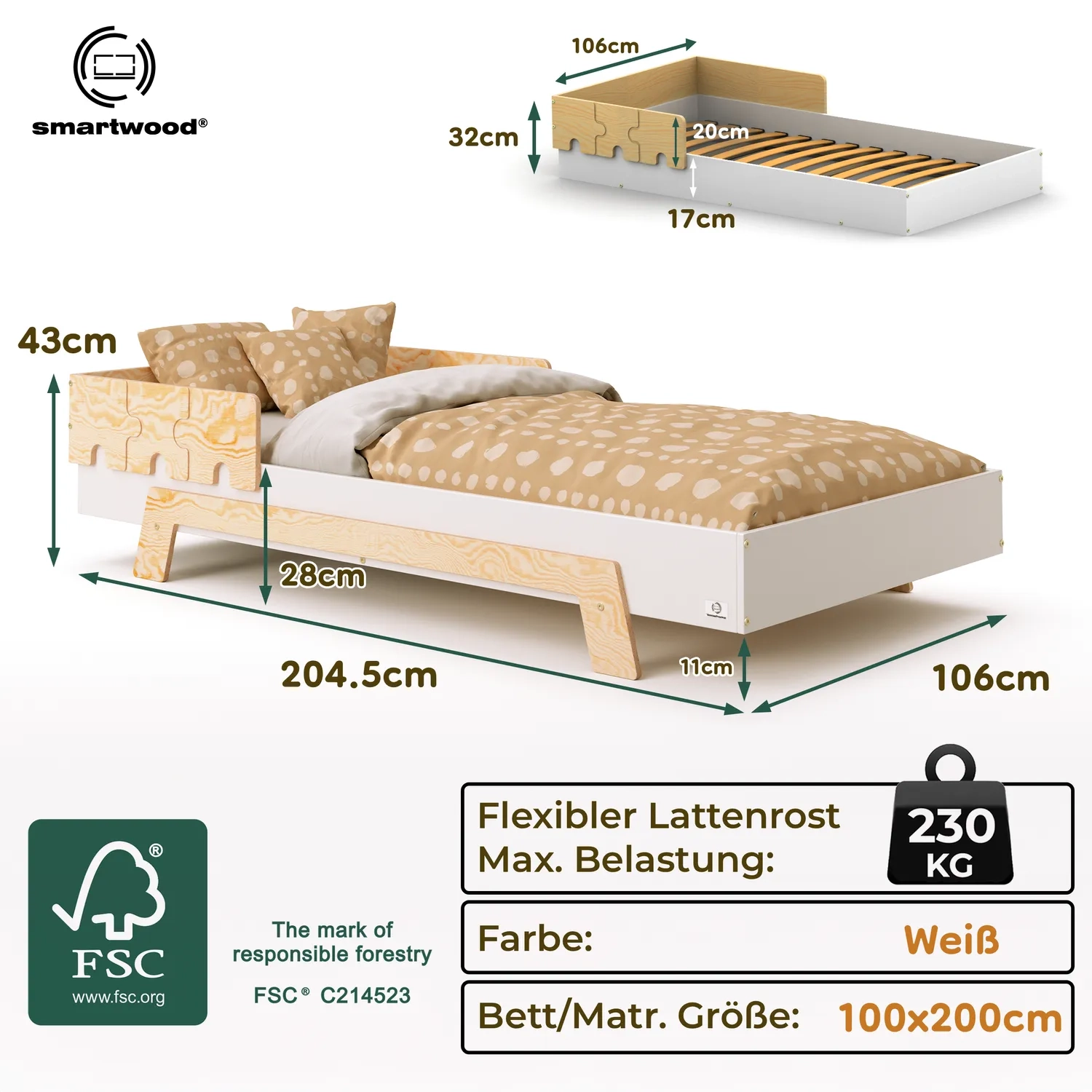 Rüsten Sie Ihr Bett mit einem zusätzlichen Geländer im Puzzle-Motiv aus.