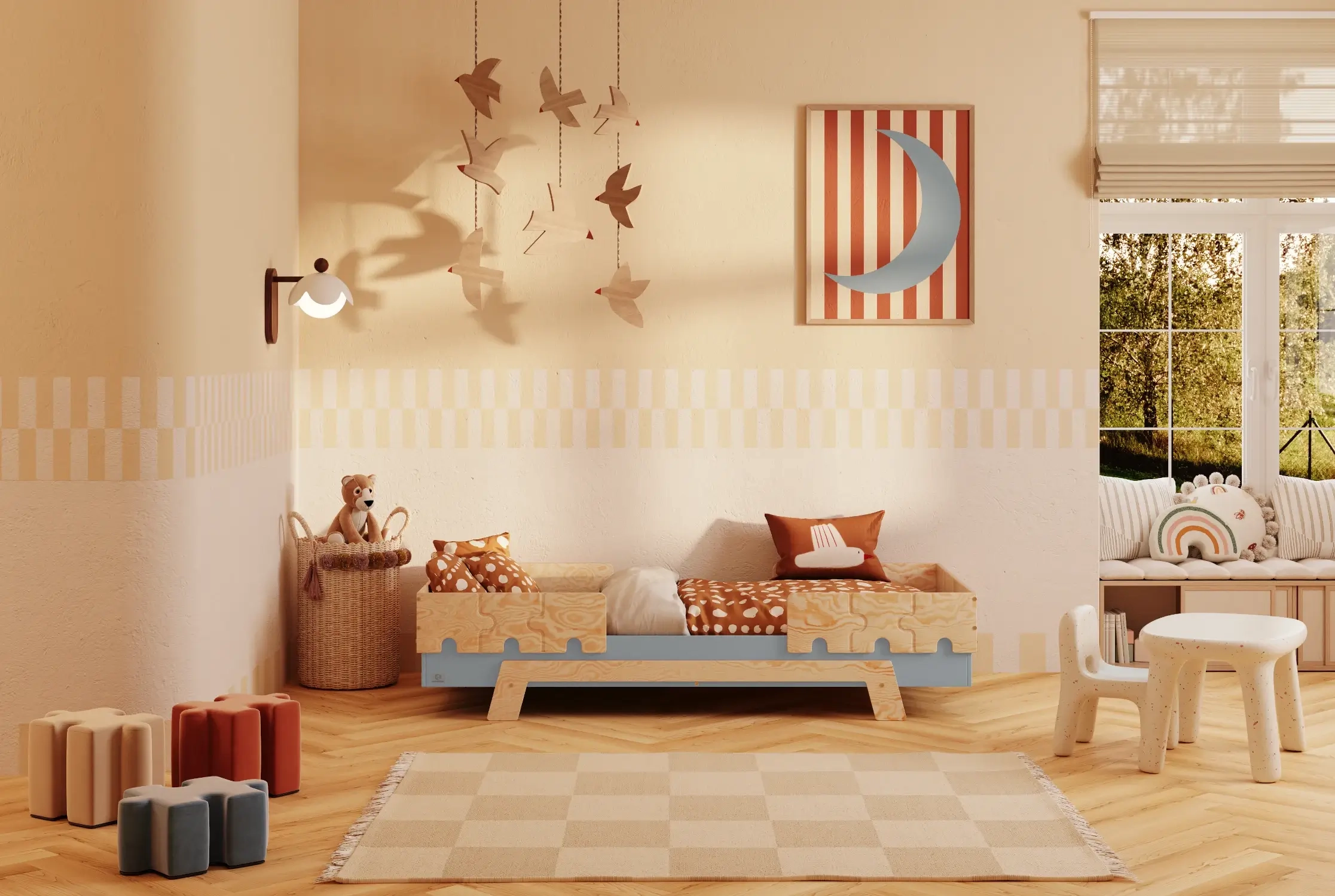 Das PUZZLE-Bett ist ein modulares Möbelstück, das du ganz einfach an das Alter, Temperament und die Entwicklungsphase deines Kindes anpasst.