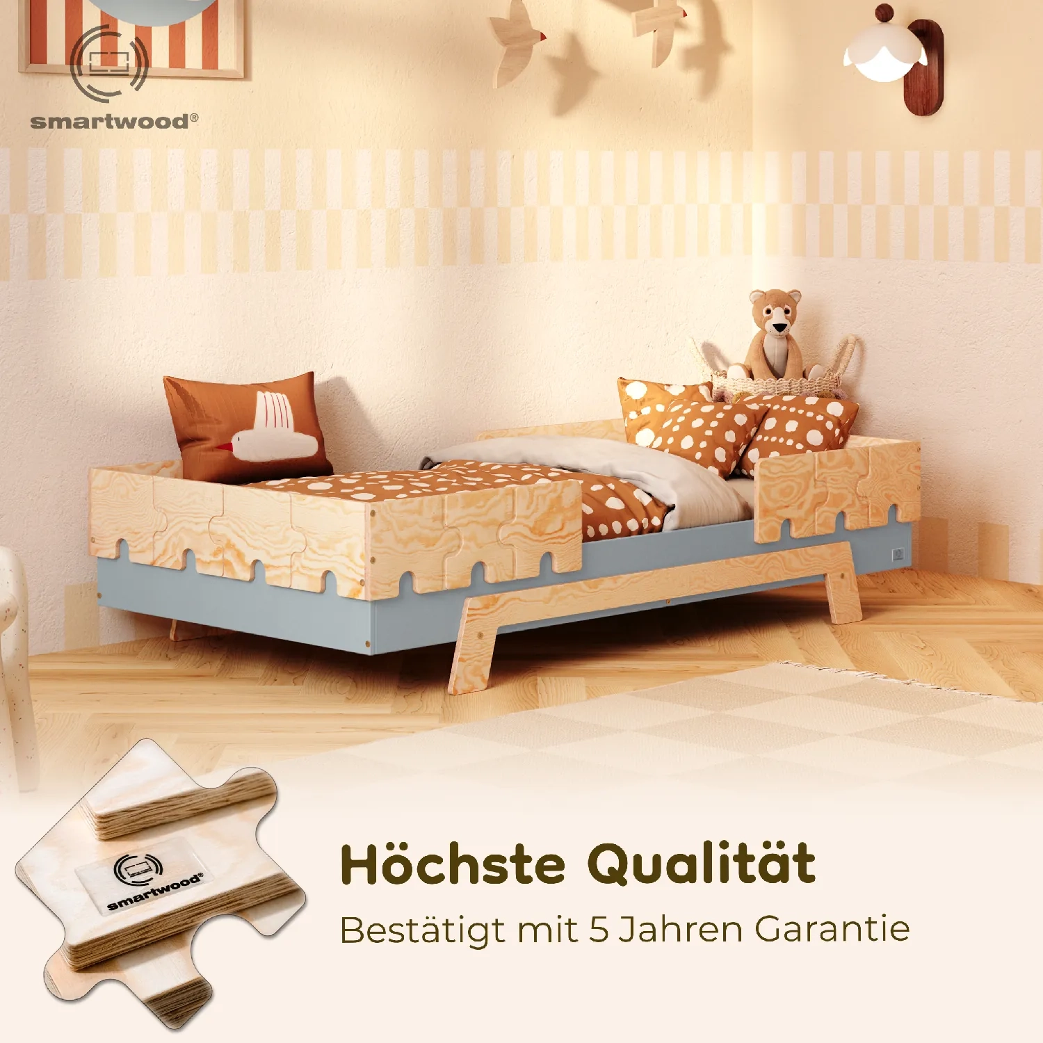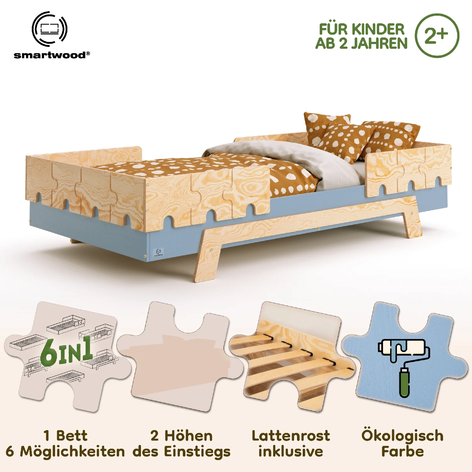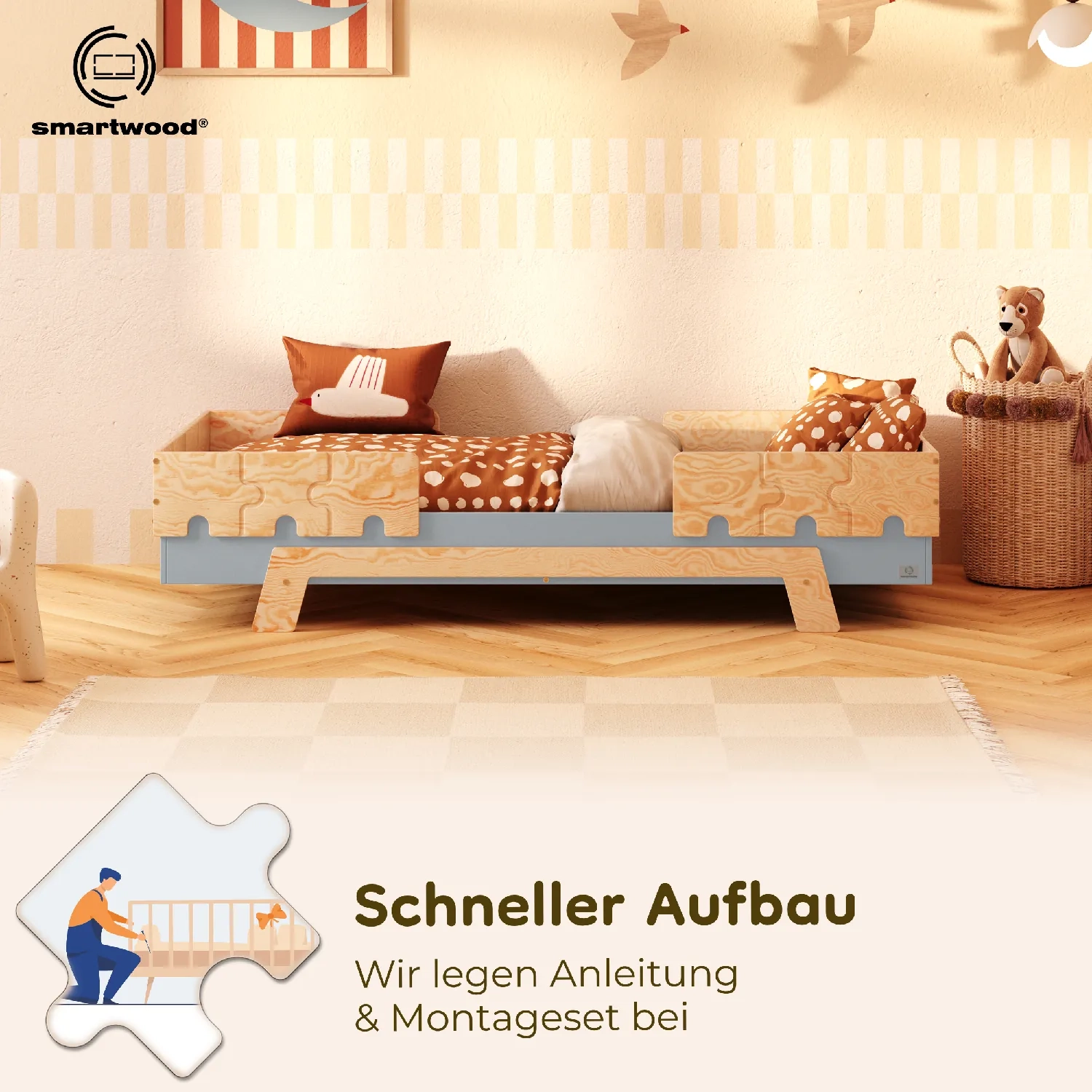 Einzelbett für Kinder mit Rausfallschutz und Lattenrost PUZZLE BR2 Montessori Holz