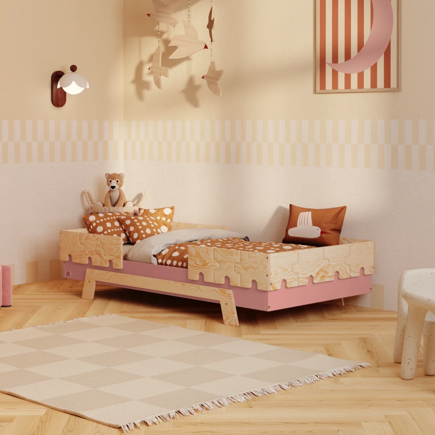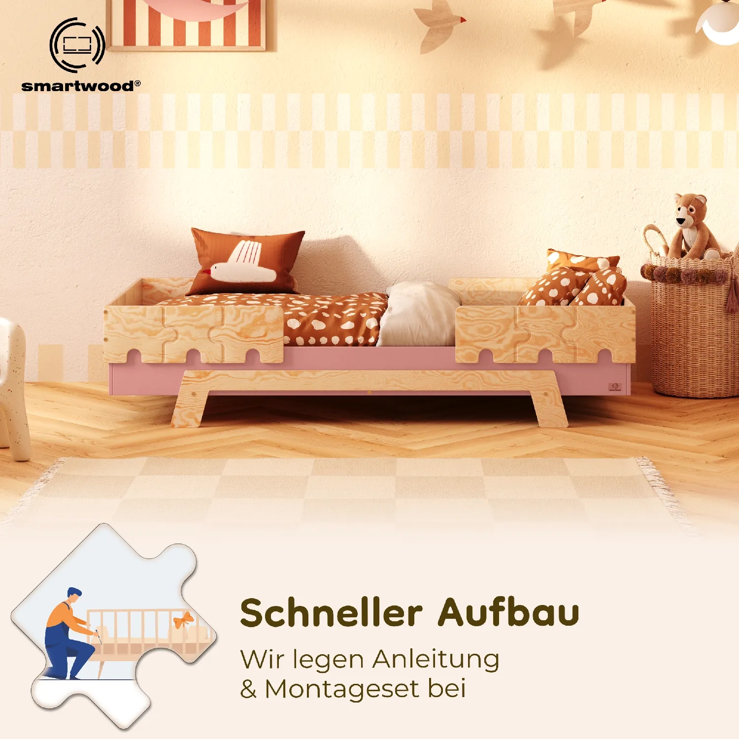 Einzelbett für Kinder mit Rausfallschutz und Lattenrost PUZZLE BR2 Montessori Holz