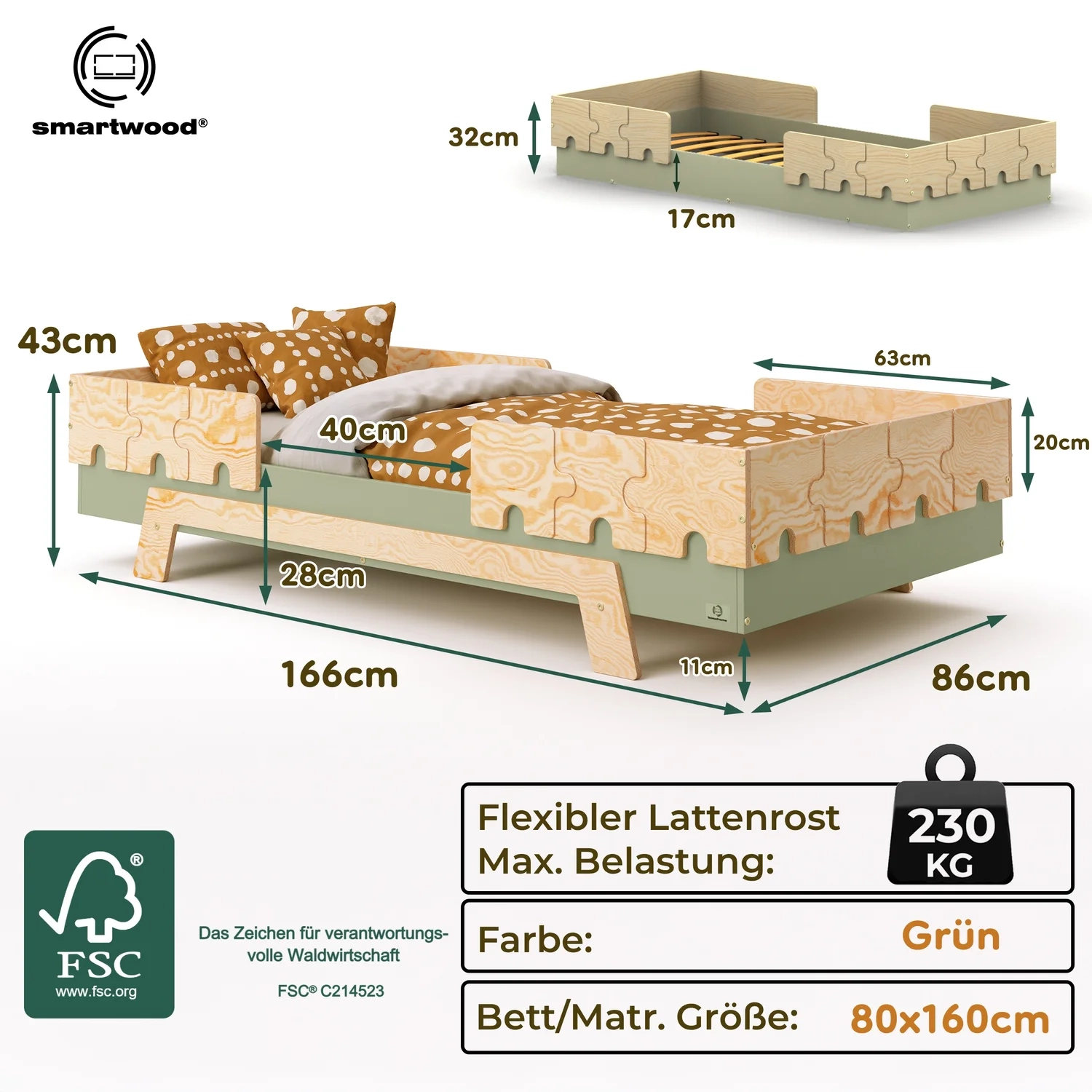 In der Praxis bedeutet das: Ein einziges Bett kann sowohl ein sicheres Bodenschlafplatz für Kleinkinder sein als auch ein „richtiges“, höheres Bett für ältere Kinder.
