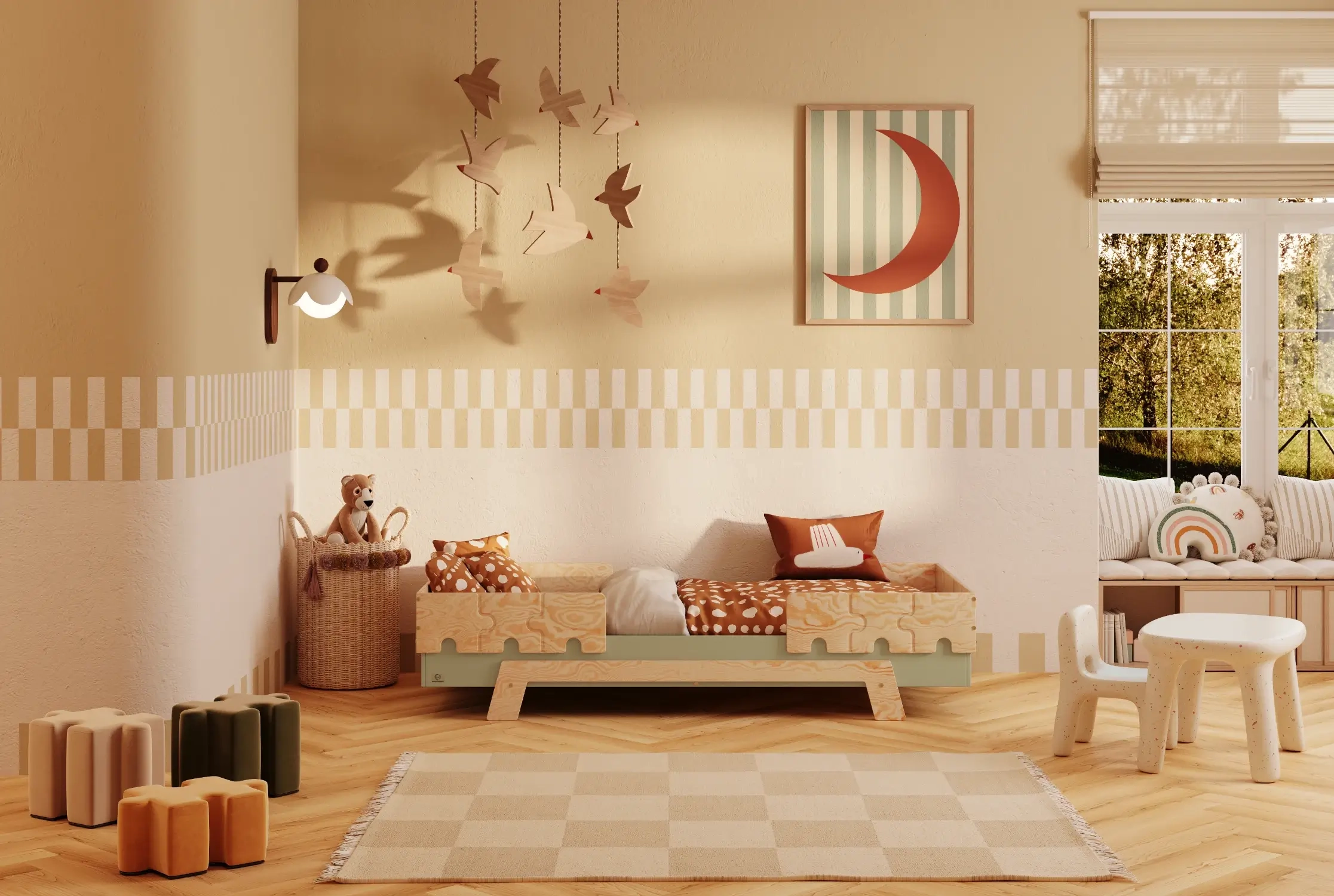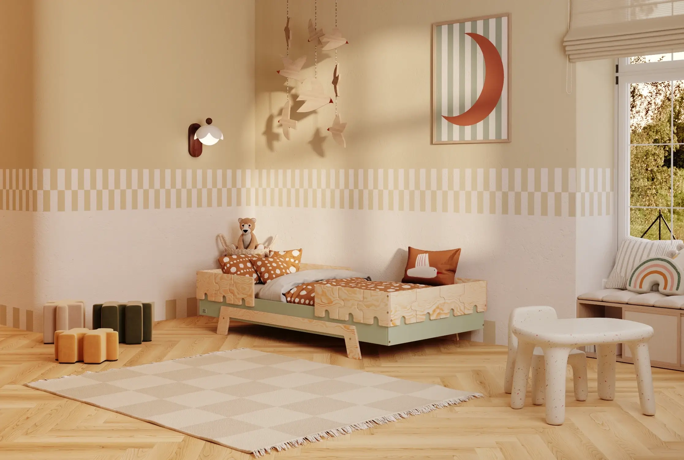 Das Bett mit Puzzlemotiv ist nicht nur ein Schlafplatz für das Kind, sondern auch ein Raum zur Entfaltung der Kreativität und Entwicklung der Problemlösungsfähigkeiten. Es ist ein Element, das mit dem Kind wächst und sich von einem lustigen und verspielten Accessoire im Schlafzimmer zu einem geschätzten Teil seiner Kindheit entwickelt.