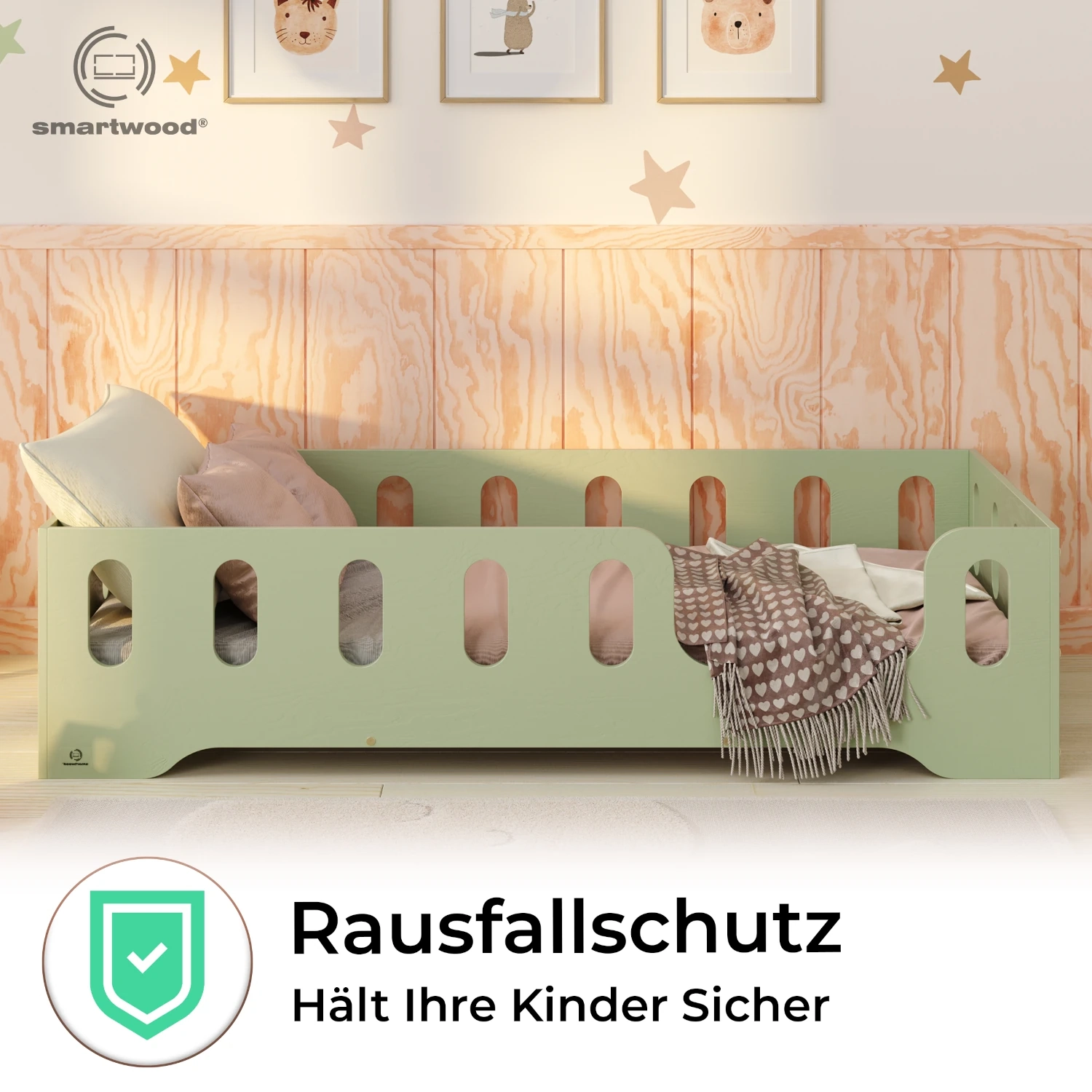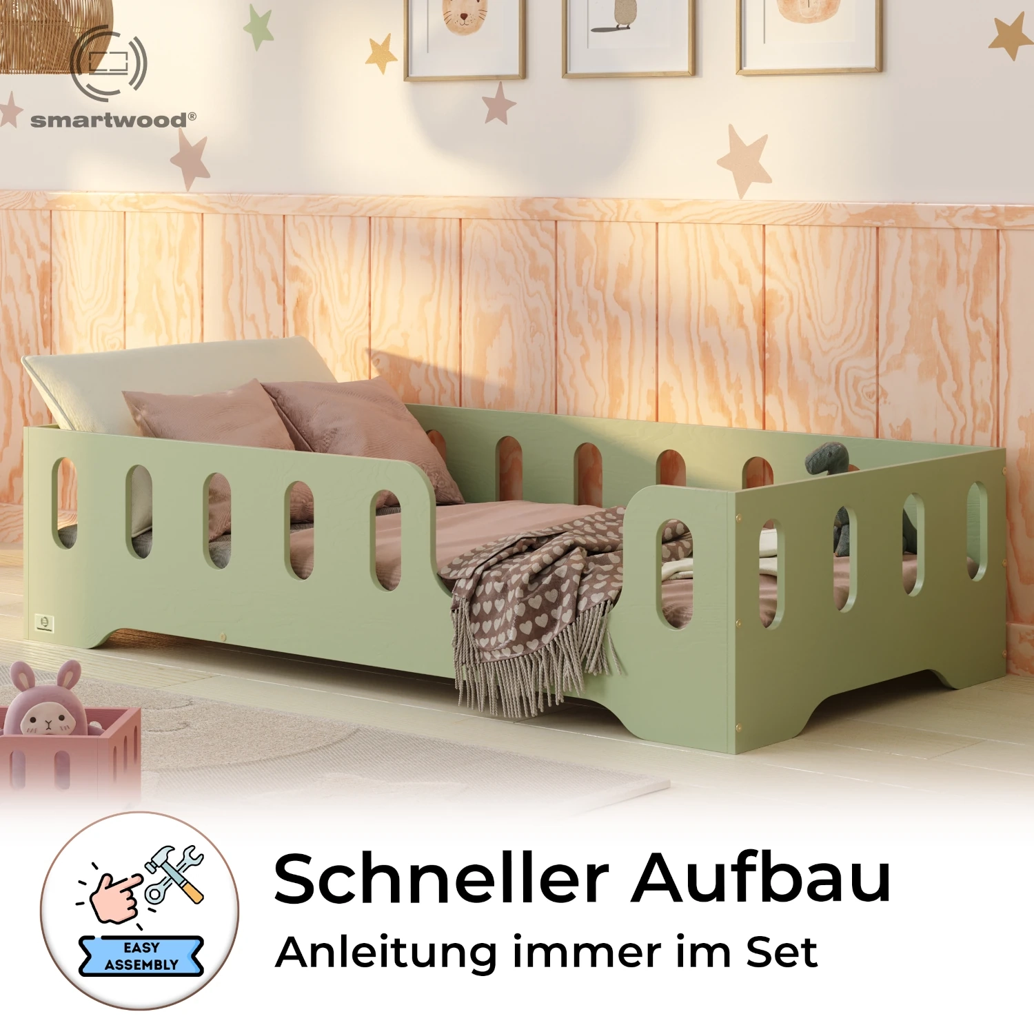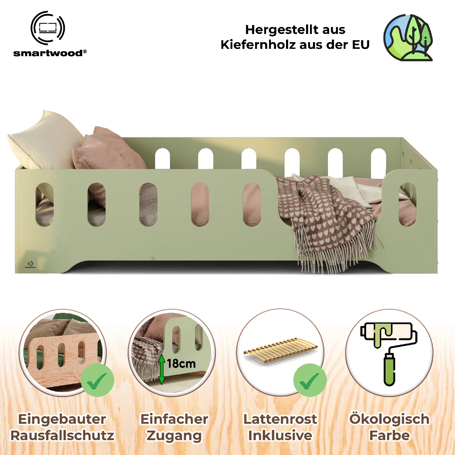 Einzelbett für Kinder mit Rausfallschutz und Lattenrost TILA 2 Montessori Holz