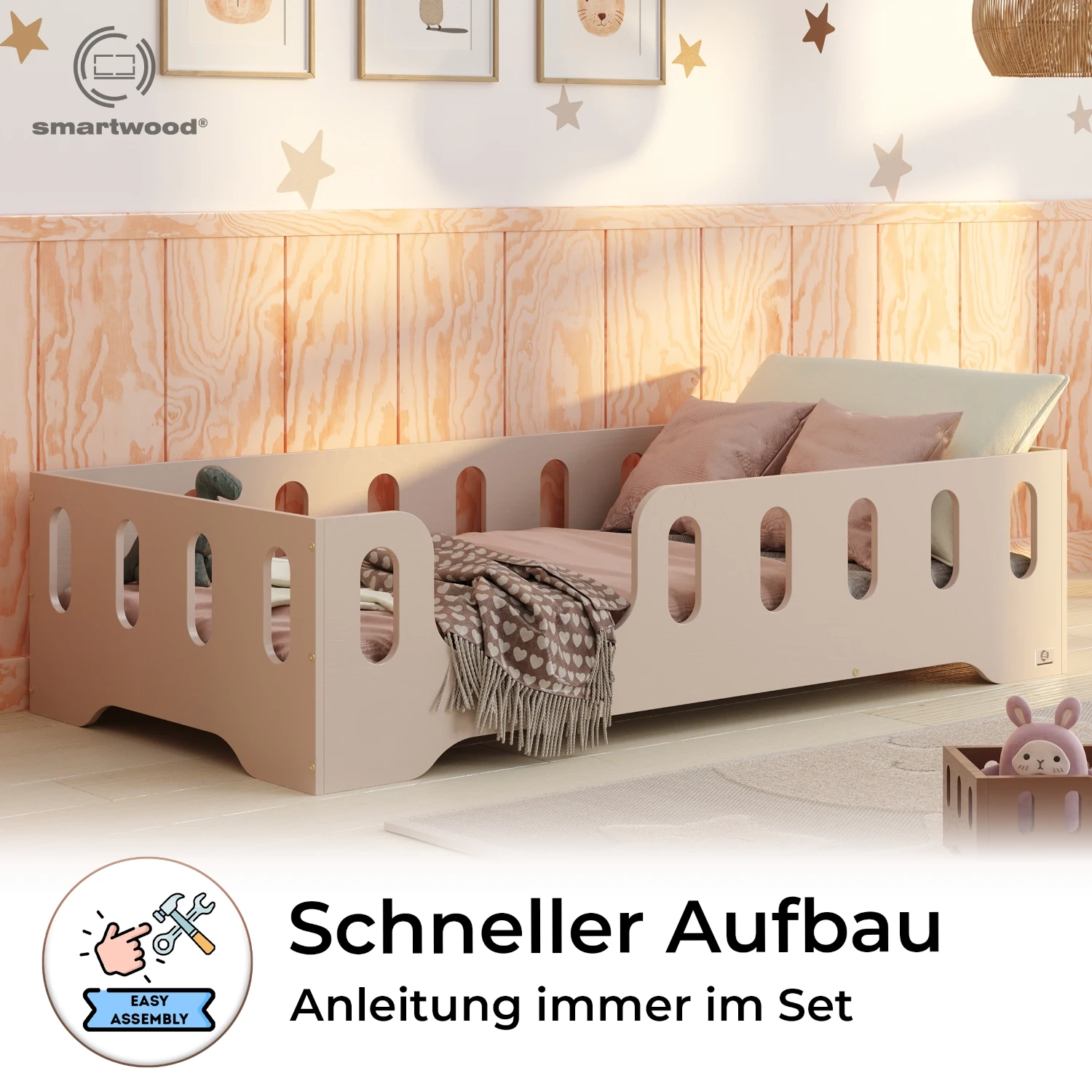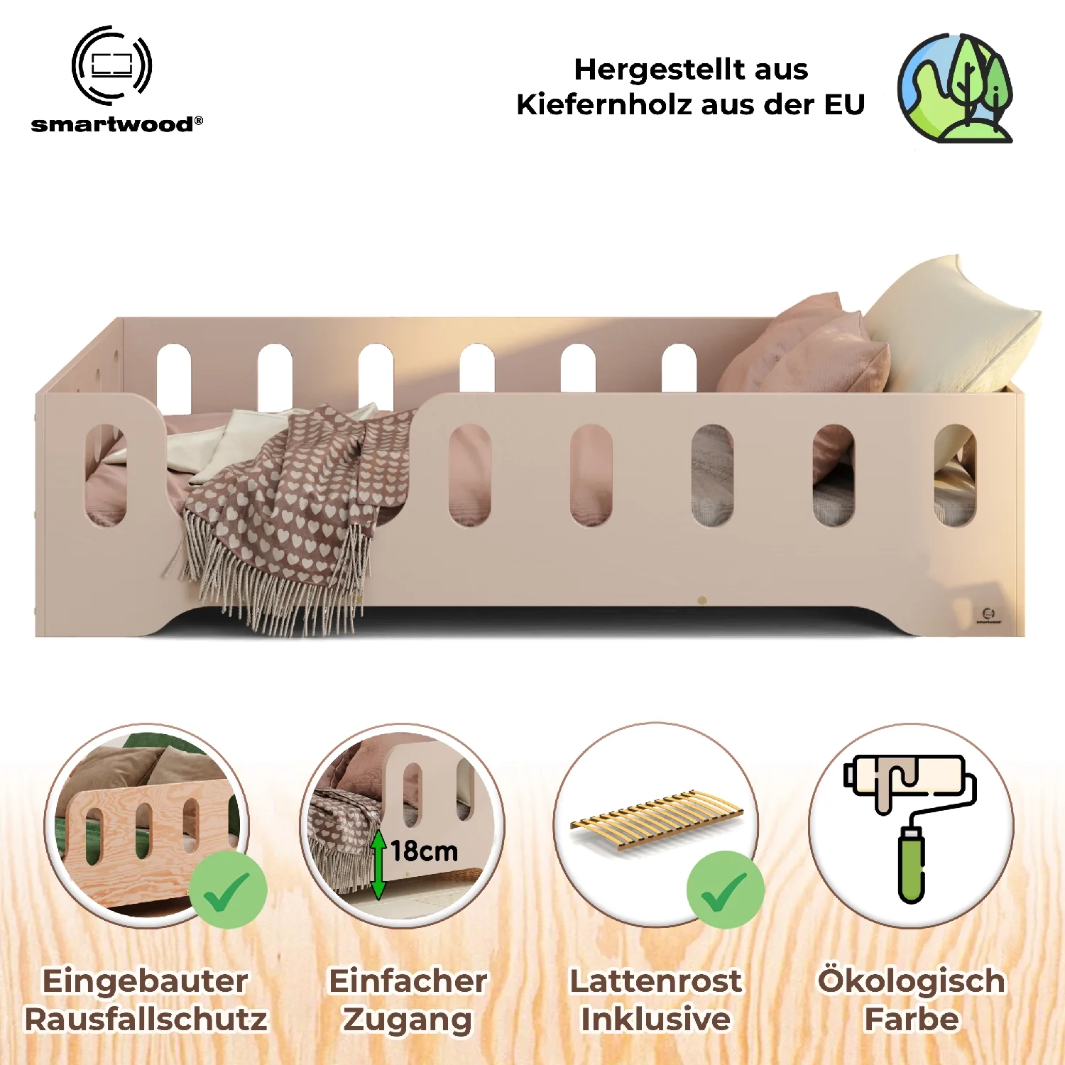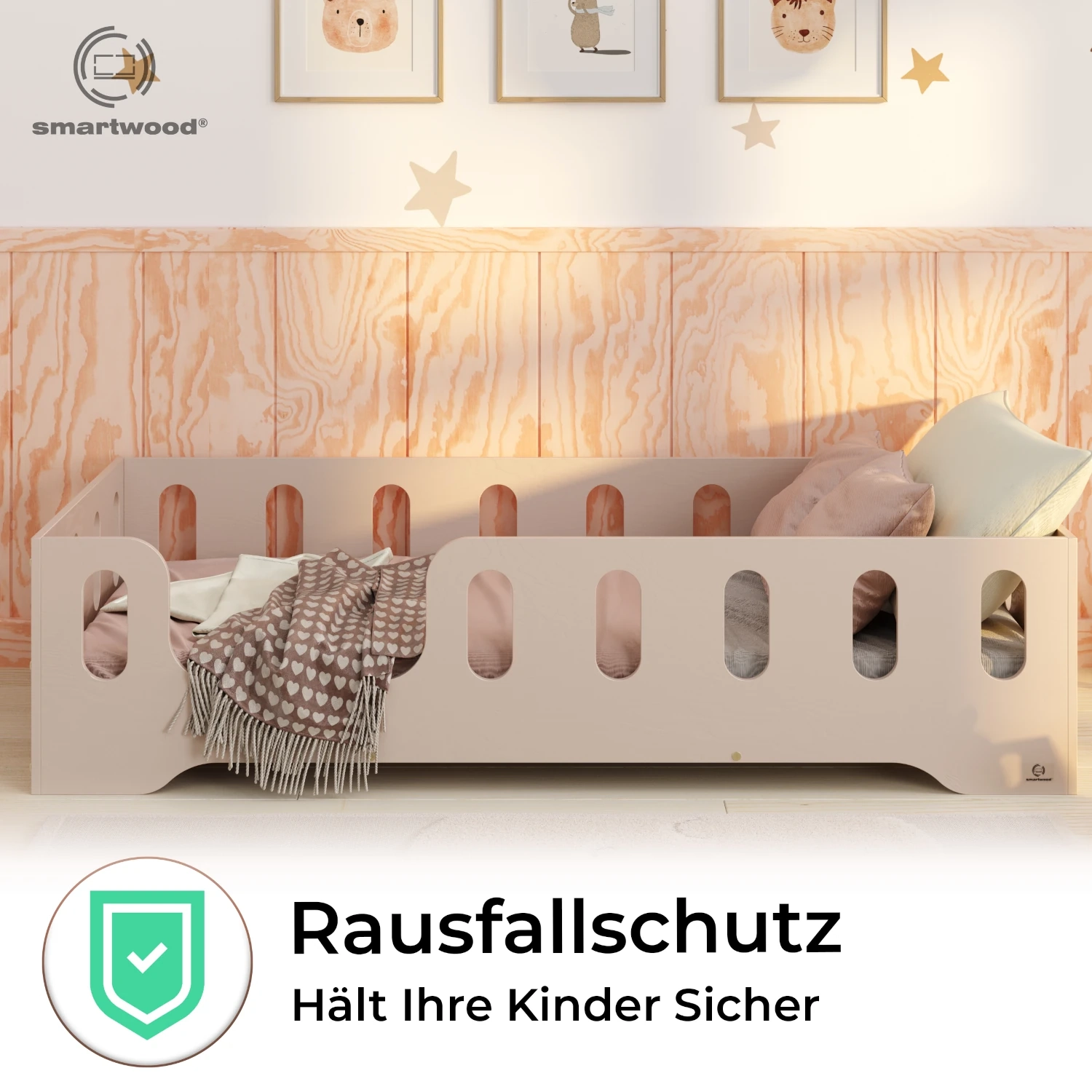 Einzelbett für Kinder mit Rausfallschutz und Lattenrost TILA 2 Montessori Holz