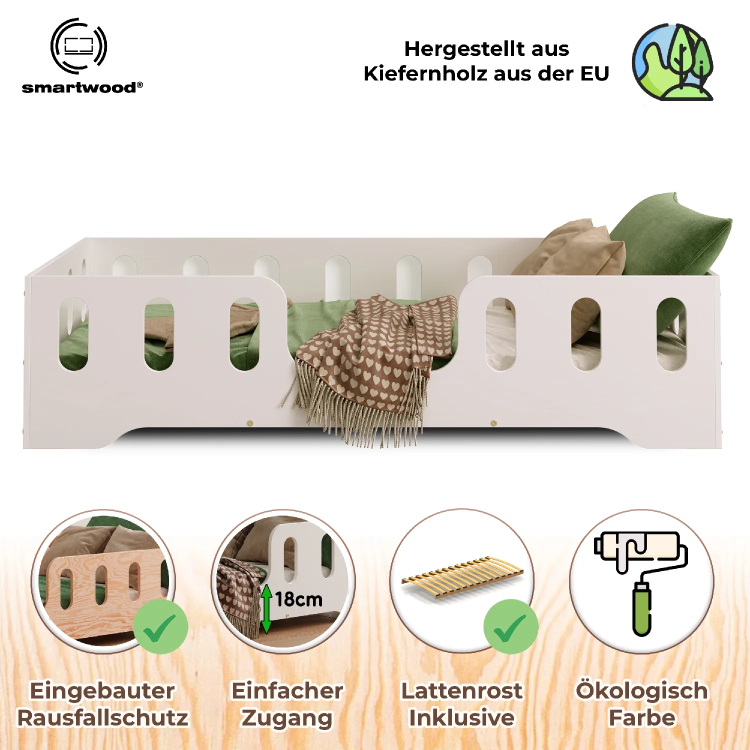 Einzelbett für Kinder mit Rausfallschutz und Lattenrost TILA 2 Montessori Holz