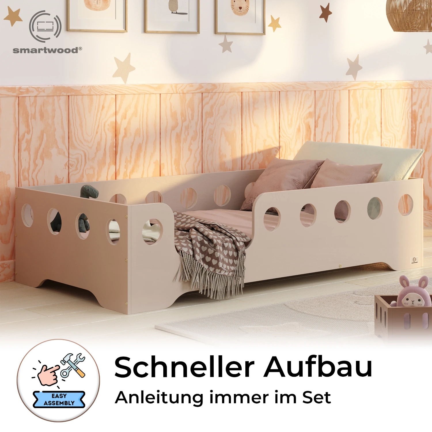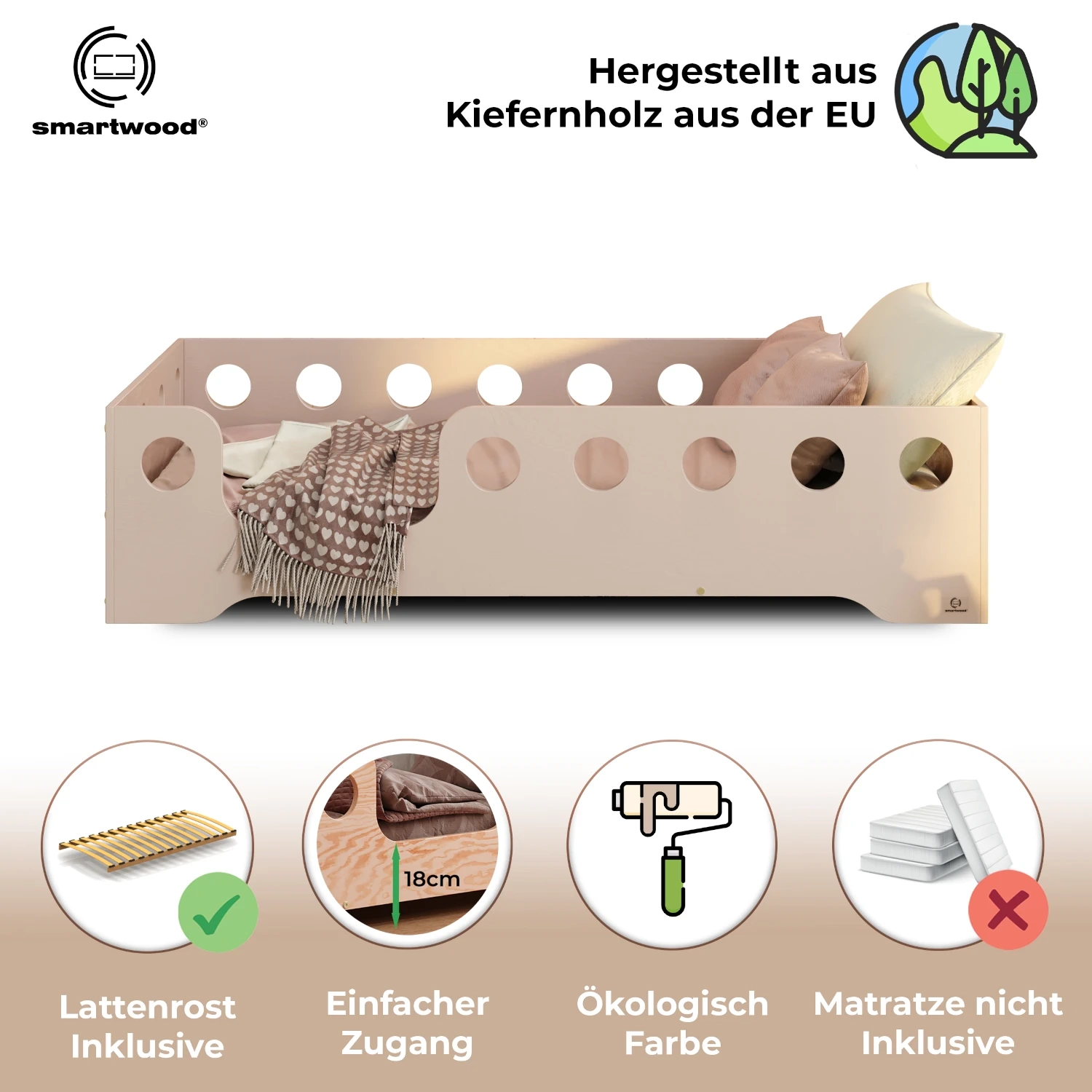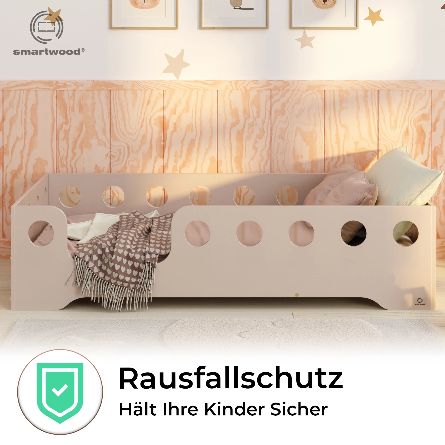 Einzelbett für Kinder mit Rausfallschutz und Lattenrost TILA 4 Montessori Holz