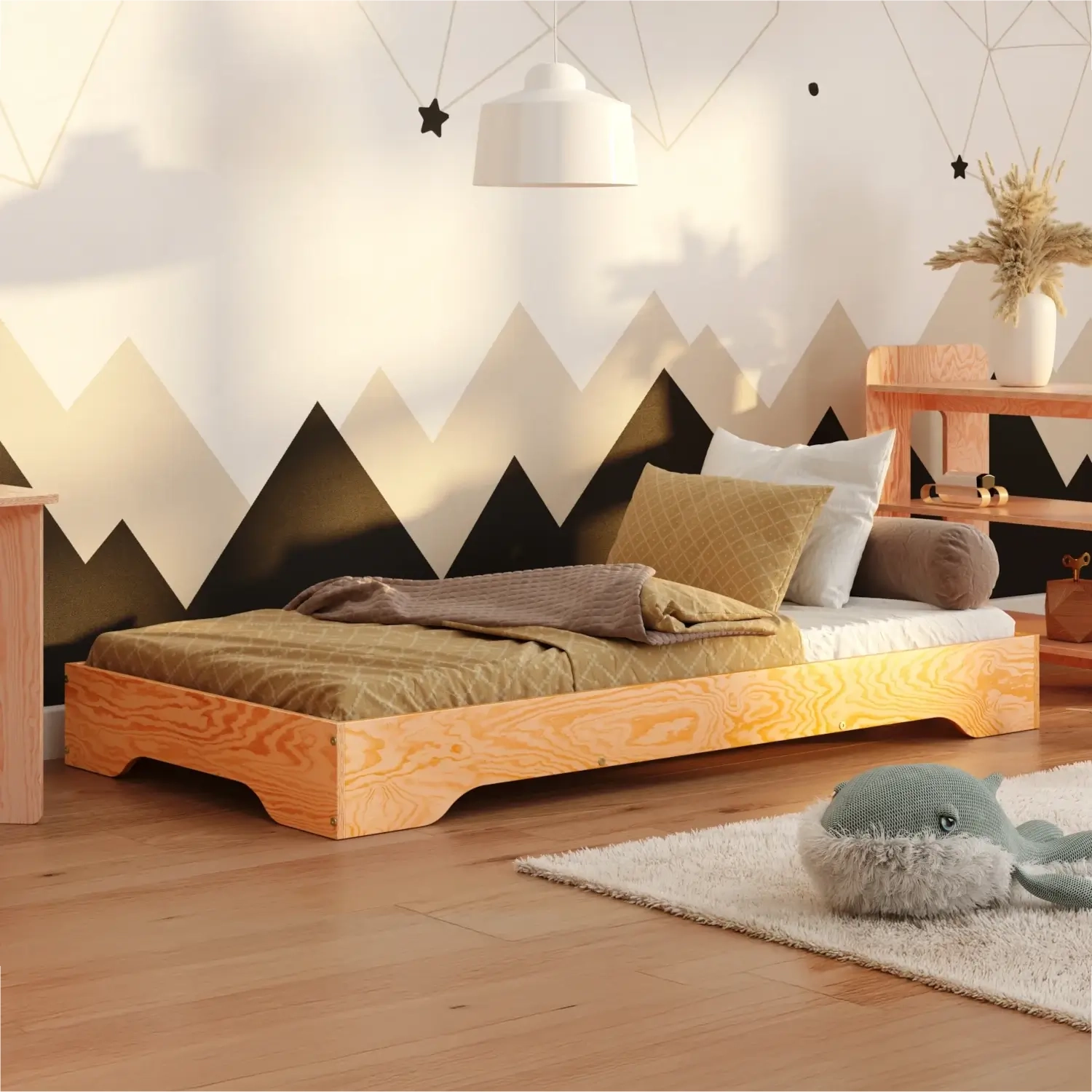 Unser Kinderbett TILA 7 sorgt dafür, dass Ihre Erwartungen erfüllt werden. Es ist nicht nur äußerst komfortabel und sicher, sondern auch stilvoll. Das minimalistische Design passt in fast jede Einrichtung. Die niedrige Höhe des Bettchens ermöglicht einen einfacheren Zugang und die bequeme Nutzung durch das Kind, fördert seine motorischen Fähigkeiten und Unabhängigkeit. Dies ermöglicht Ihrem Kind auch, die Umgebung sicher zu erkunden, seine natürliche Neugier und sein Autonomiegefühl zu entwickeln. Selbst ein Kleinkind, das die Kunst der Fortbewegung ohne Hände noch nicht beherrscht, findet seinen Platz auf dem Bett ;)