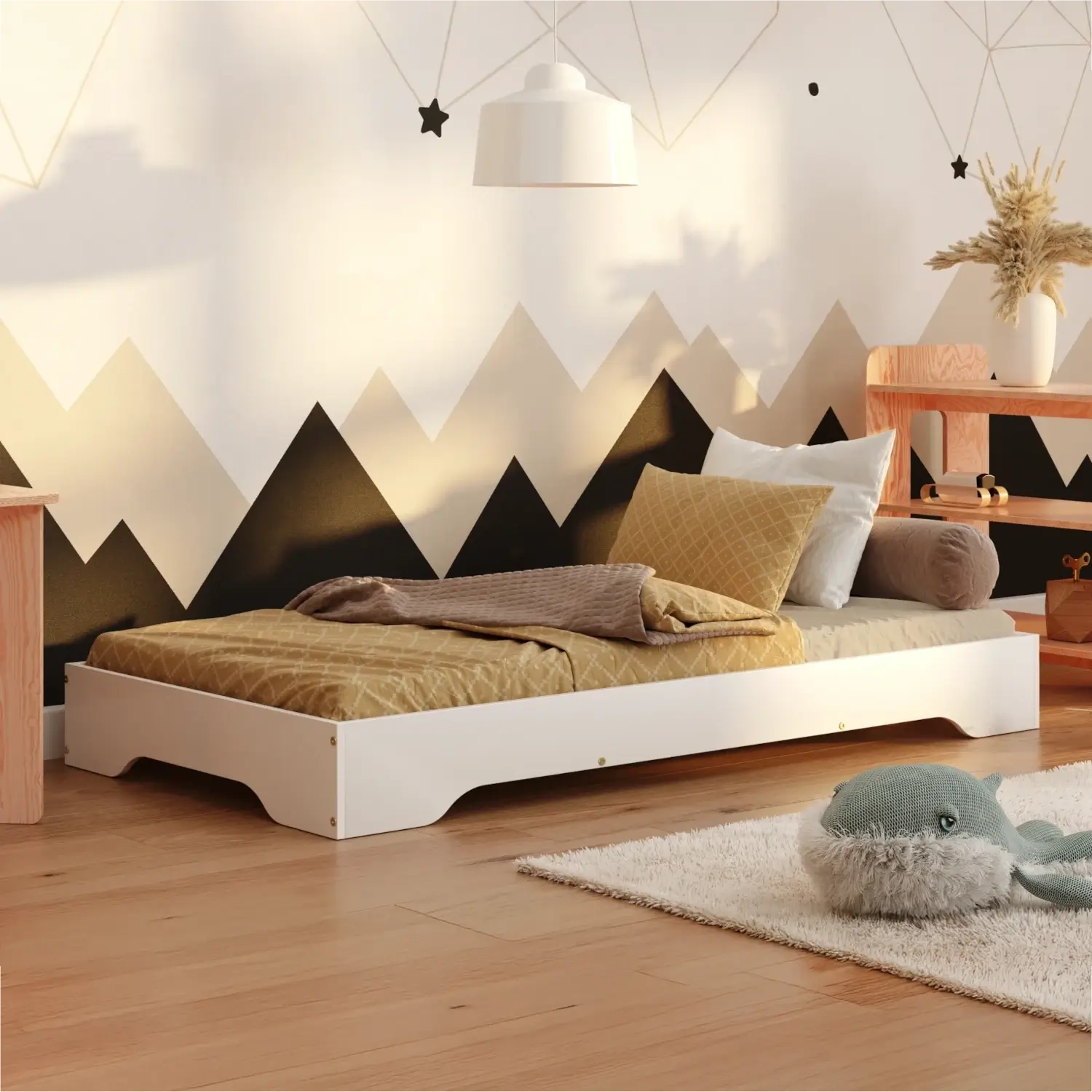 Unser Kinderbett TILA 7 sorgt dafür, dass Ihre Erwartungen erfüllt werden. Es ist nicht nur äußerst komfortabel und sicher, sondern auch stilvoll. Das minimalistische Design passt in fast jede Einrichtung. Die niedrige Höhe des Bettchens ermöglicht einen einfacheren Zugang und die bequeme Nutzung durch das Kind, fördert seine motorischen Fähigkeiten und Unabhängigkeit. Dies ermöglicht Ihrem Kind auch, die Umgebung sicher zu erkunden, seine natürliche Neugier und sein Autonomiegefühl zu entwickeln. Selbst ein Kleinkind, das die Kunst der Fortbewegung ohne Hände noch nicht beherrscht, findet seinen Platz auf dem Bett ;)