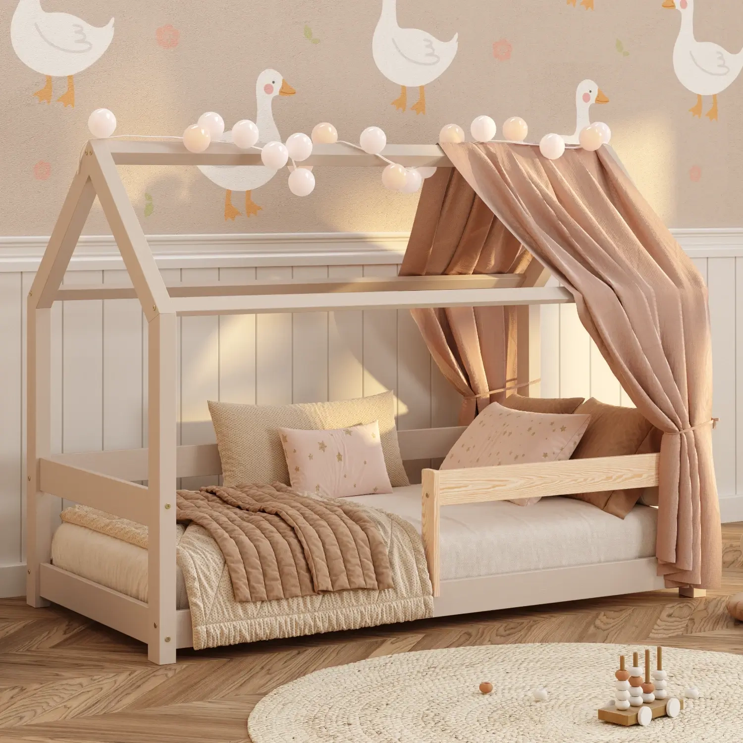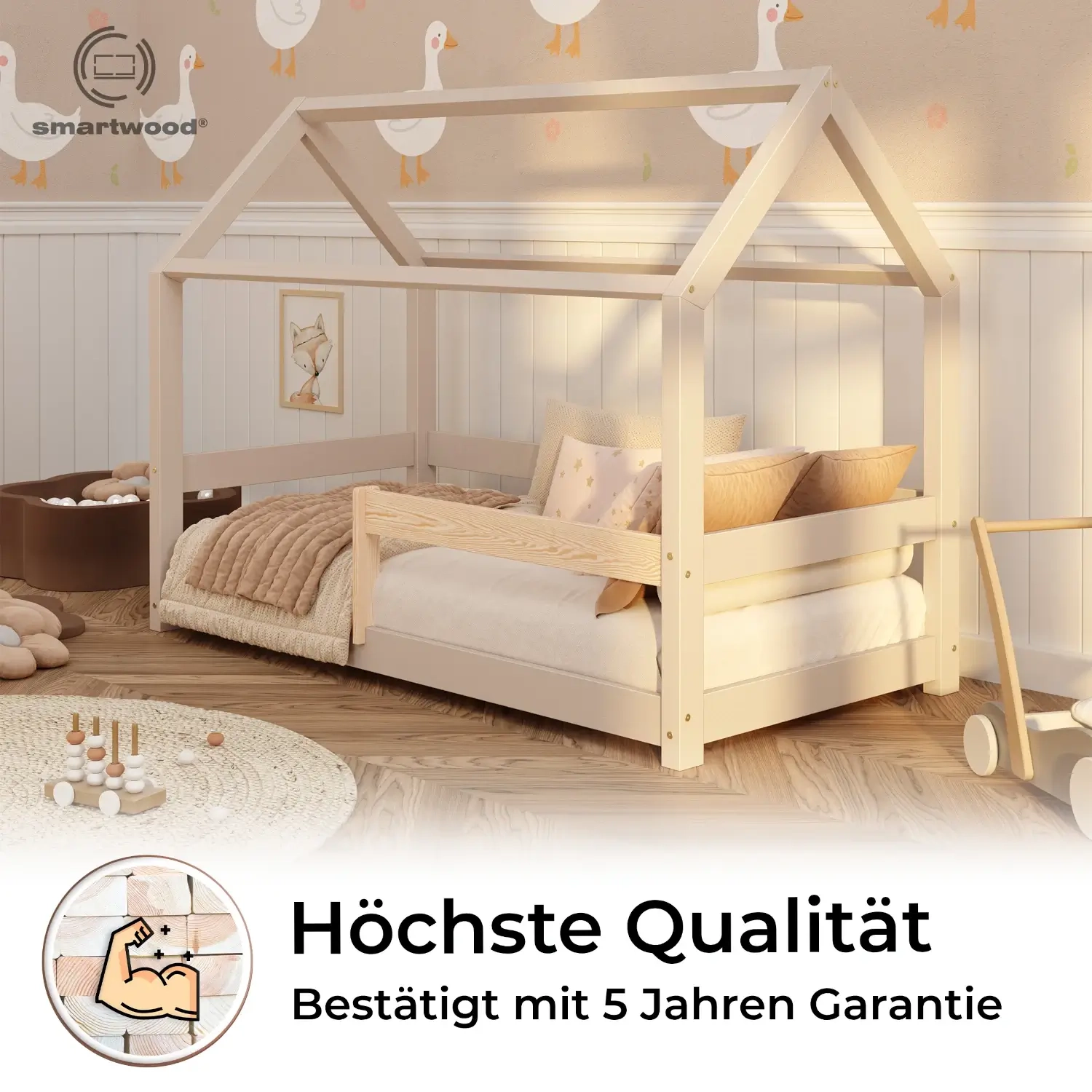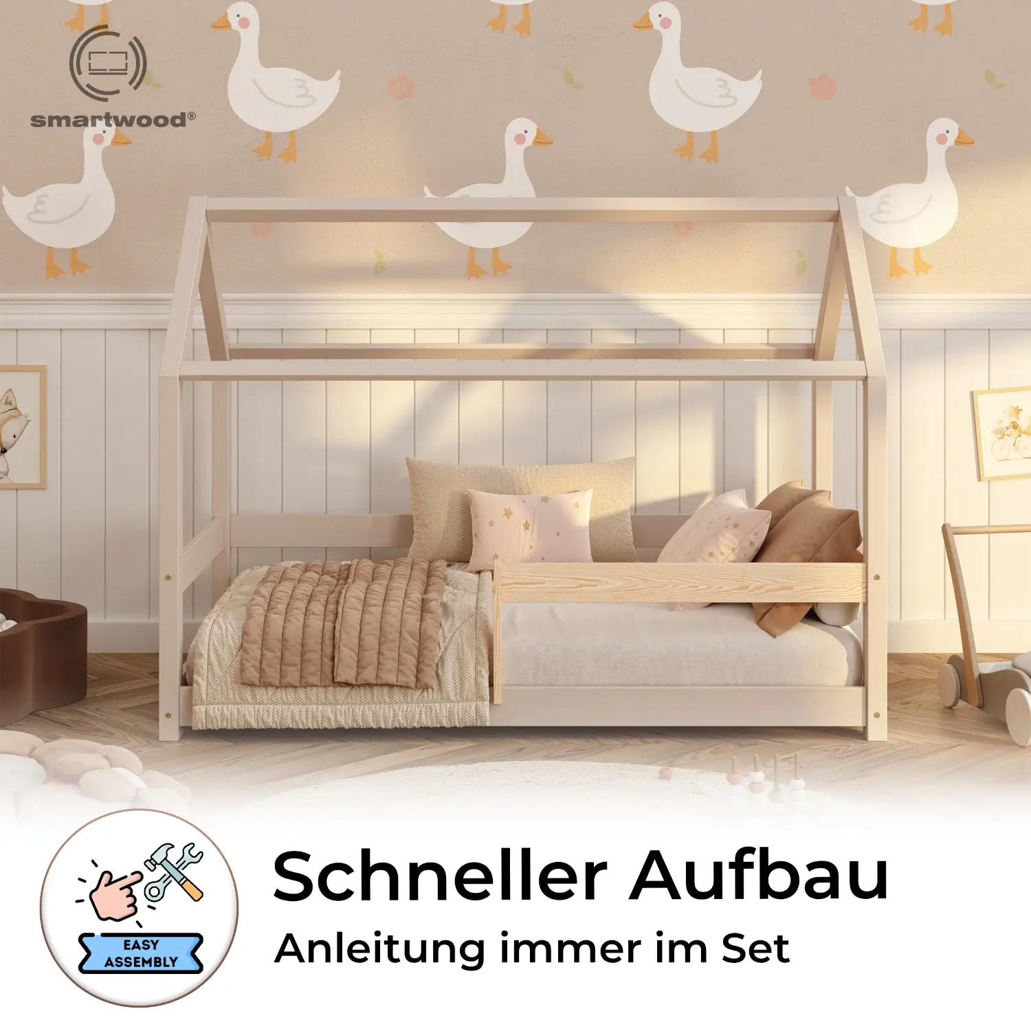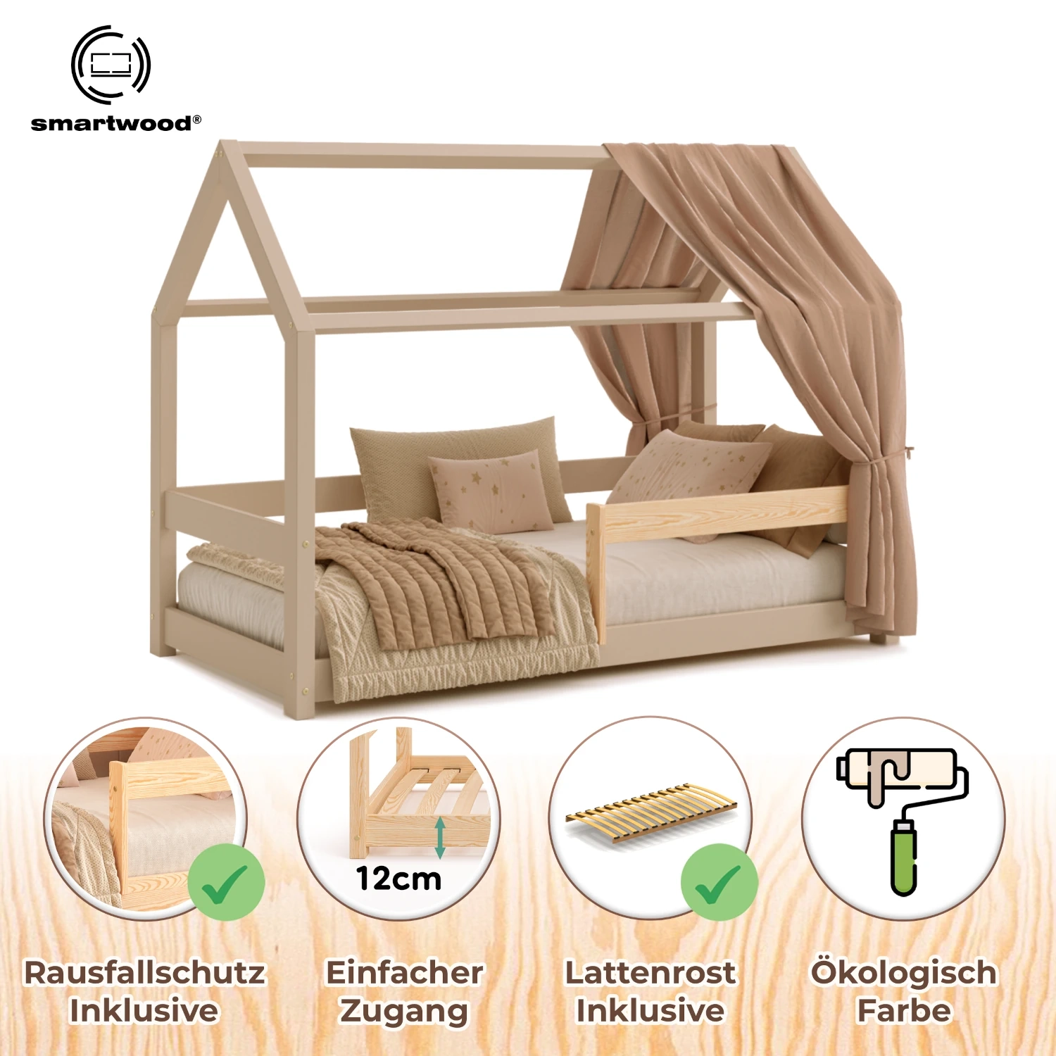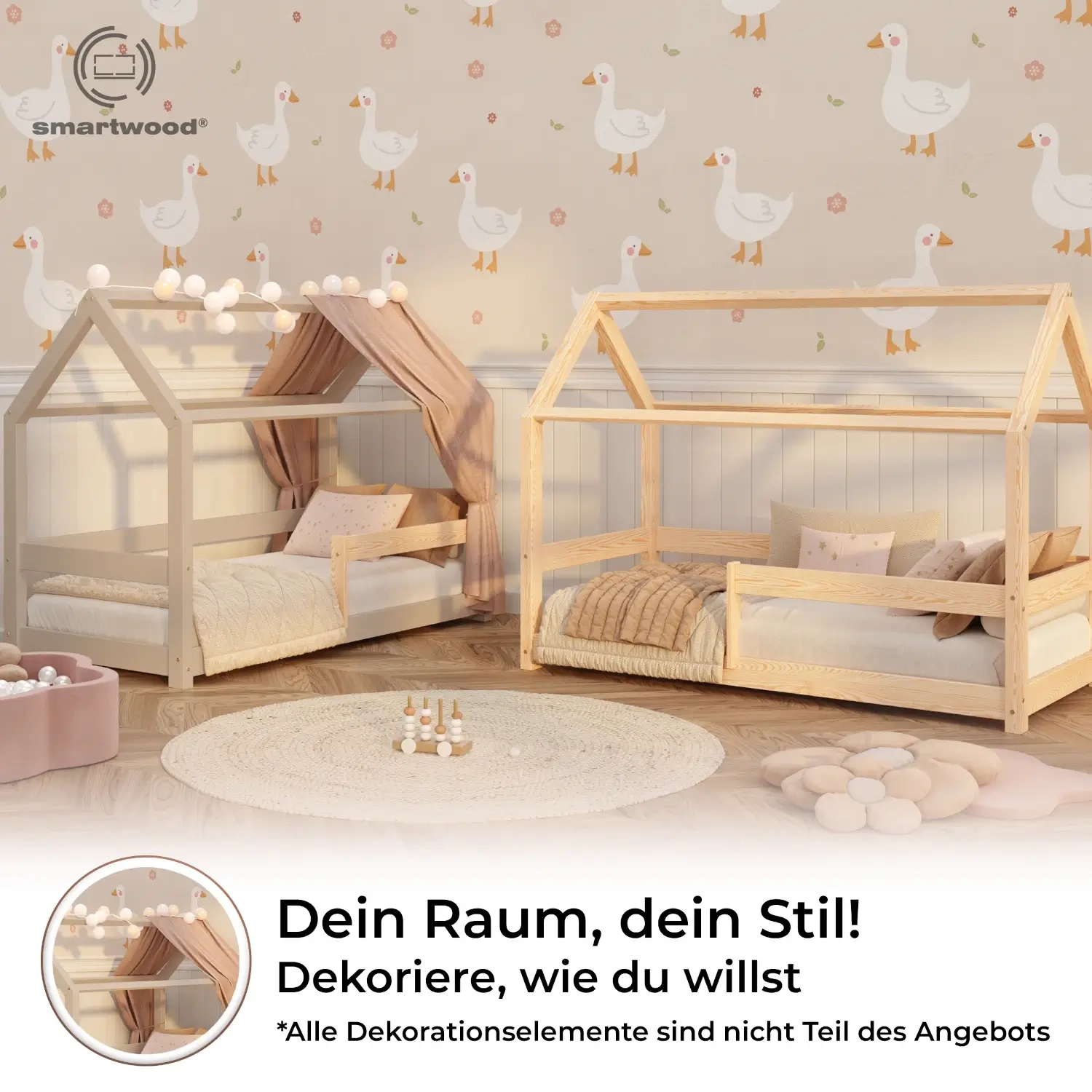Hausbett für Kinder mit Rausfallschutz und Lattenrost MILO Montessori Holz