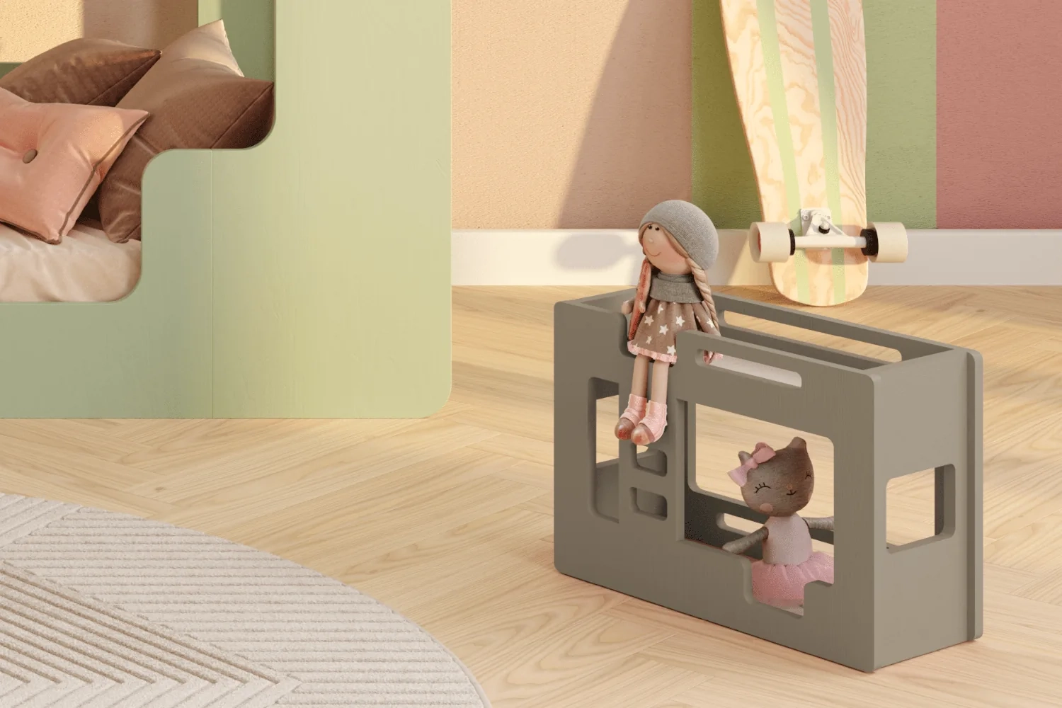 Lass dein Kind wie einen echten Betreuer fühlen! Unser Mini-Bett für Puppen ist eine außergewöhnliche Miniaturversion unseres Bestseller-Kinderbettes, hergestellt aus hochwertigem Kiefernsperrholz. Jetzt können dein Kind und seine geliebte Puppe, Teddybär oder Kuscheltier nicht nur gemeinsame Momente teilen, sondern auch… im gleichen Stil!