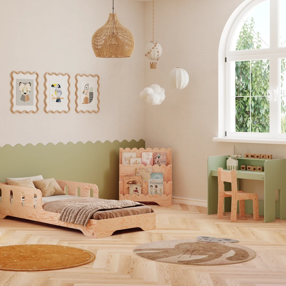 Wenn es um Kinderschätze, Spielzeug und Bücher geht, lohnt es sich, einen gut organisierten Platz dafür zu haben. Unser Schränkchen LULU ist ein universelles Möbelstück, das sich nicht nur hervorragend als Bücherregal, sondern auch als Aufbewahrungsort für Spielzeug, Spiele und Alltagsgegenstände eignet. Die offene Konstruktion erleichtert dem Kind den Zugang zu den aufbewahrten Gegenständen und fördert das selbstständige Aufräumen. Dank seiner kinderfreundlichen Form und angepassten Höhe passt das Möbelstück ideal in jedes Kinderzimmer und „wächst“ gemeinsam mit dem Kind mit.