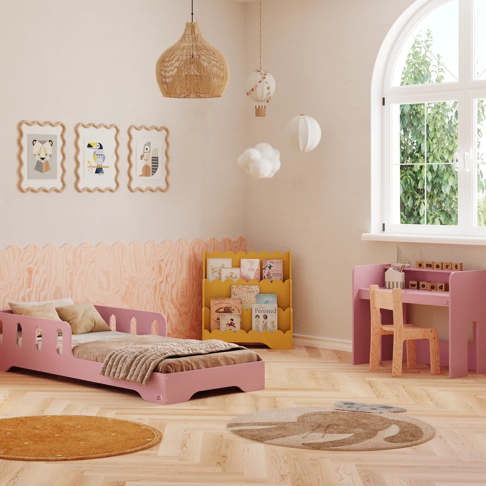 Das Regal garantiert nicht nur Solidität und Langlebigkeit, sondern schafft auch sichere Entwicklungsbedingungen im Kinderzimmer für viele Jahre. Verleihe dem Kinderzimmer deines Kindes Charme und Sicherheit!
