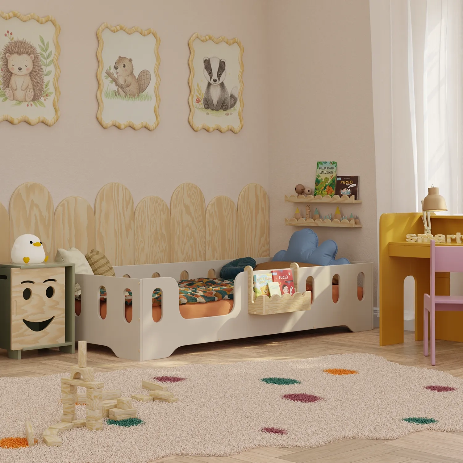 Des LULI-Hängeregal wurde speziell für den täglichen Gebrauch im Kinderzimmer entwickelt. Die glatte Oberfläche und die abgerundeten Kanten machen ihn sicher und angenehm anzufassen. Das Material enthält keine schädlichen Substanzen oder flüchtigen organischen Verbindungen, wodurch seine Verwendung nicht nur komfortabel, sondern auch sicher ist. Dank der soliden Verarbeitung ist der Anhänger langlebig, und seine einfache Montage erleichtert das Aufhängen am Bett.