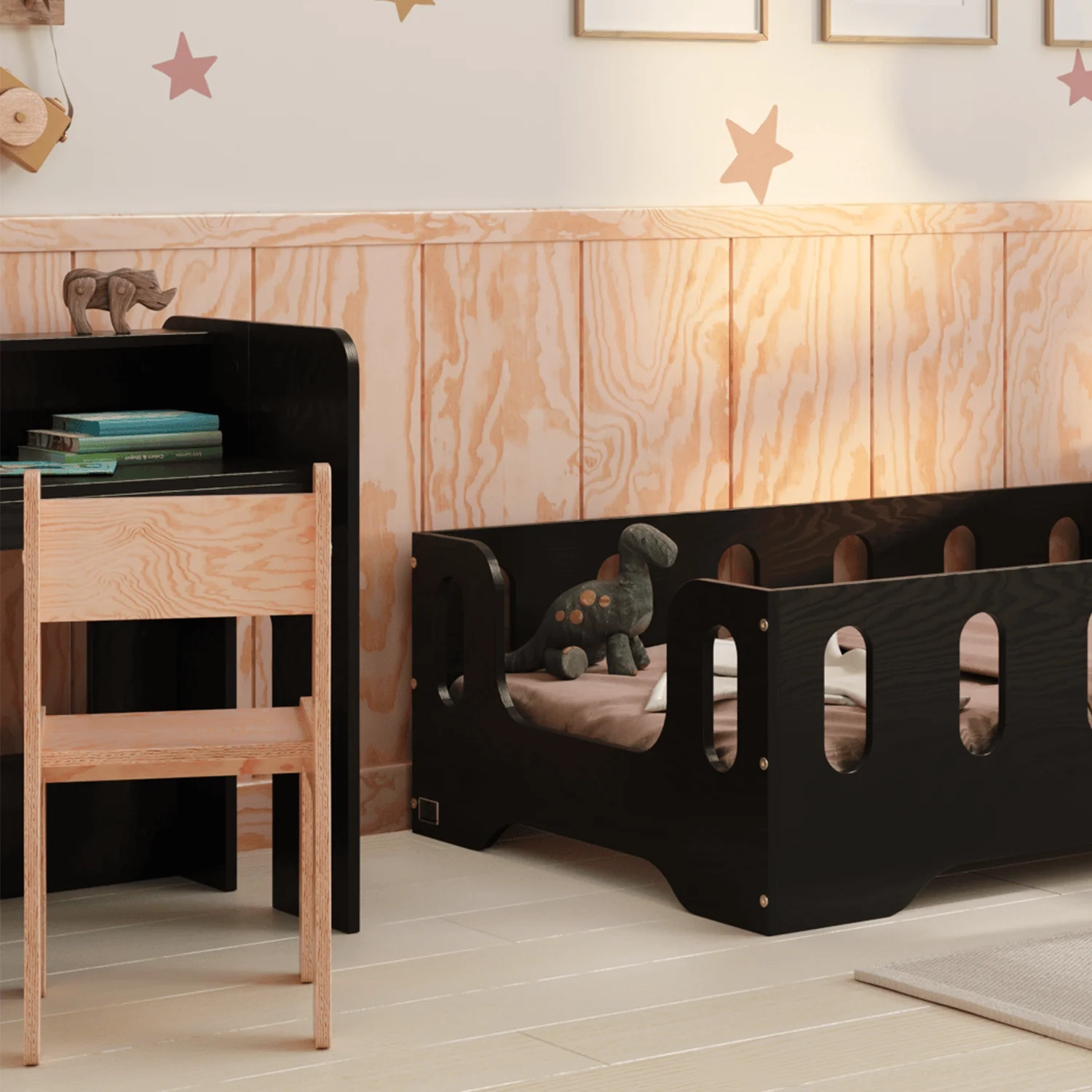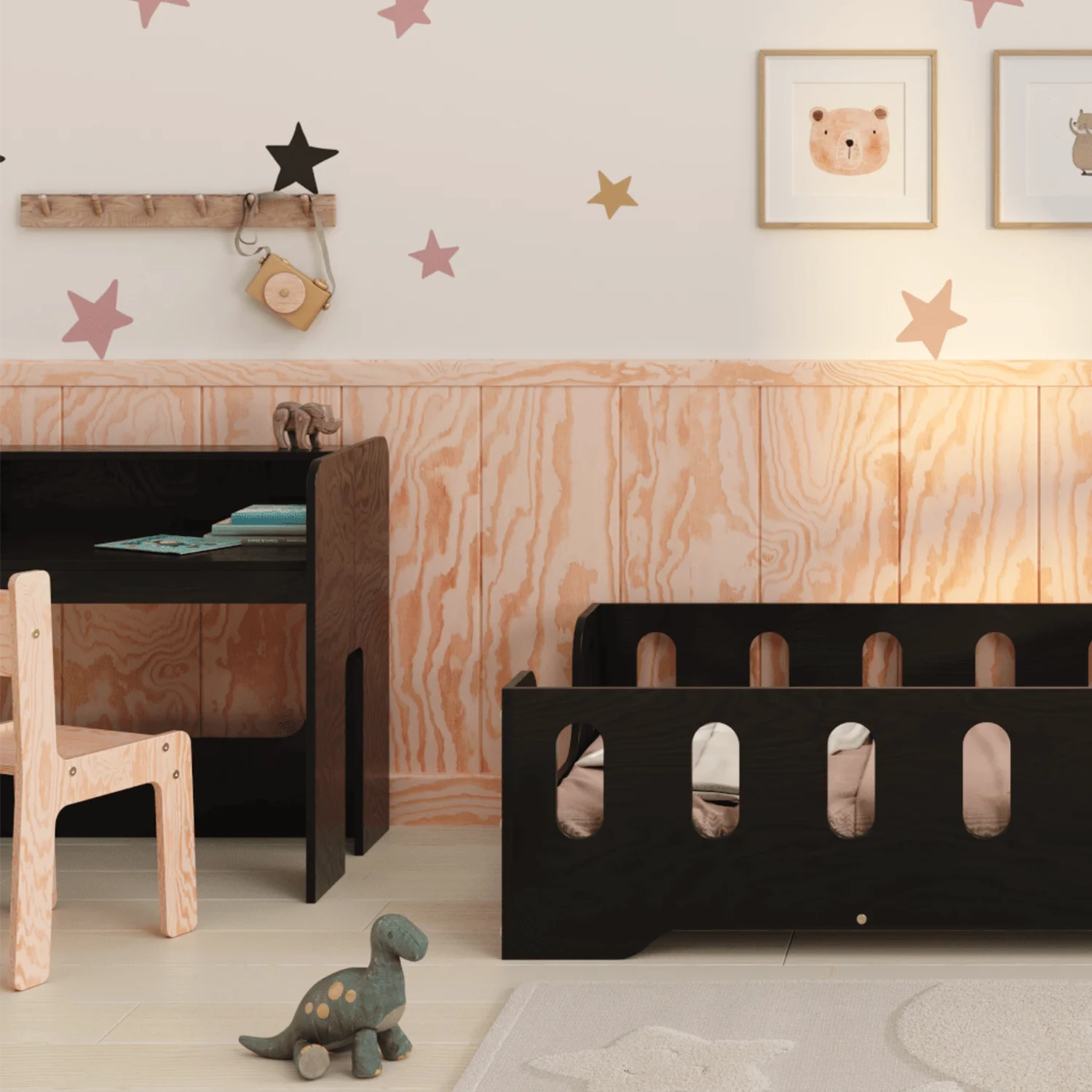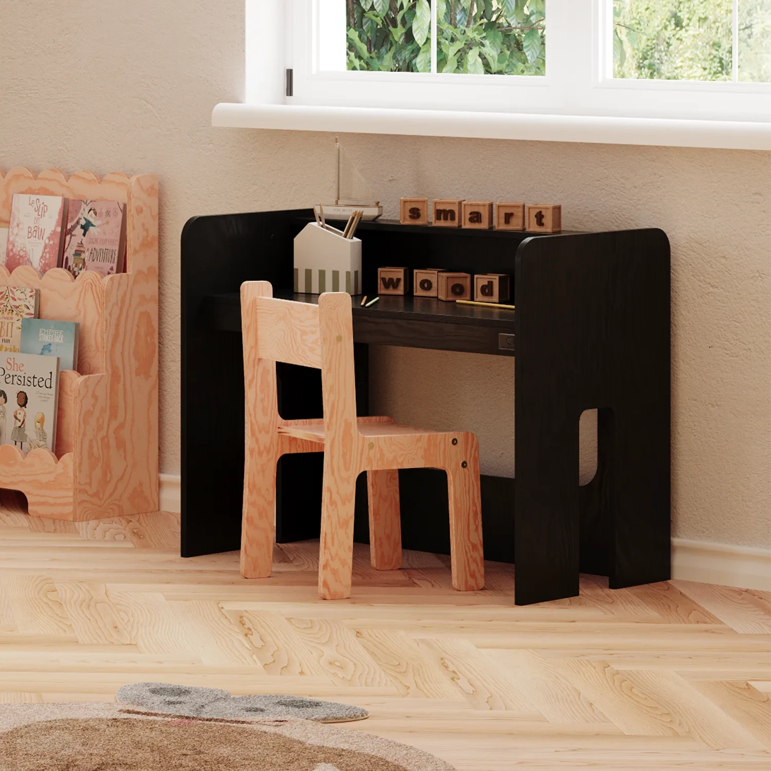 MIMI BRK ist die perfekte Kombination aus Funktionalität und Ästhetik, die speziell für die jüngsten Nutzer entwickelt wurde. Hergestellt aus hochwertigem Kiefernsperrholz, bietet es Langlebigkeit und Stabilität. Die glatten, abgerundeten Kanten sorgen für die Sicherheit des Kindes bei der täglichen Nutzung. Der Schreibtisch ist mit einem praktischen Regal ausgestattet, das zusätzlichen Platz für Bücher oder Schulmaterialien bietet. Die kompakten Maße des Sets sind auf die Bedürfnisse der Kleinsten abgestimmt und schaffen einen komfortablen Ort zum Lernen und Spielen. Erhältlich in 11 Farben, lässt es sich an jedes Interieur anpassen. Das Set passt perfekt zu anderen Möbeln aus unserer Kollektion und schafft einen Raum, der die Entwicklung Ihres Kindes fördert.
