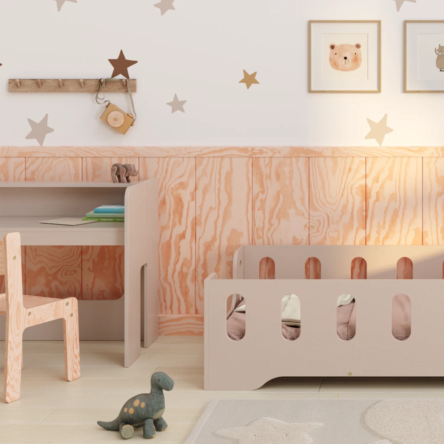 MIMI BRK ist die perfekte Kombination aus Funktionalität und Ästhetik, die speziell für die jüngsten Nutzer entwickelt wurde. Hergestellt aus hochwertigem Kiefernsperrholz, bietet es Langlebigkeit und Stabilität. Die glatten, abgerundeten Kanten sorgen für die Sicherheit des Kindes bei der täglichen Nutzung. Der Schreibtisch ist mit einem praktischen Regal ausgestattet, das zusätzlichen Platz für Bücher oder Schulmaterialien bietet. Die kompakten Maße des Sets sind auf die Bedürfnisse der Kleinsten abgestimmt und schaffen einen komfortablen Ort zum Lernen und Spielen. Erhältlich in 11 Farben, lässt es sich an jedes Interieur anpassen. Das Set passt perfekt zu anderen Möbeln aus unserer Kollektion und schafft einen Raum, der die Entwicklung Ihres Kindes fördert.