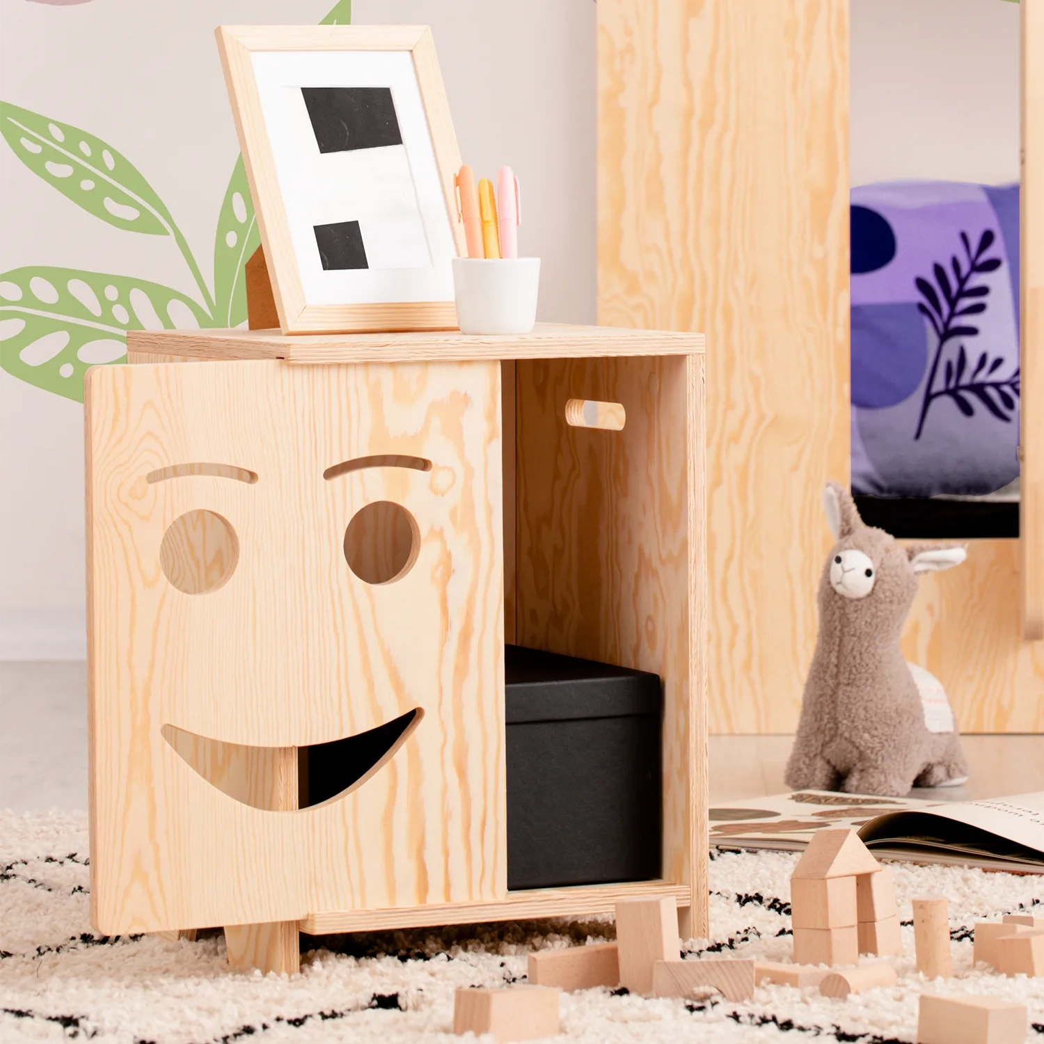 Wenn es um die Aufbewahrung von Schätzen geht, ist es am besten, ein gutes Versteck für sie zu haben. Noch besser, wenn dieses Versteck sicher ist und gut aussieht. All diese Bedingungen erfüllt unser Nachttisch KAPI, der sich durch ein kinderfreundliches Design und Schiebetüren mit Gesichtsmotiven auszeichnet. Es gibt drei Versionen mit Gesichtern zur Auswahl – sammeln Sie sie alle!